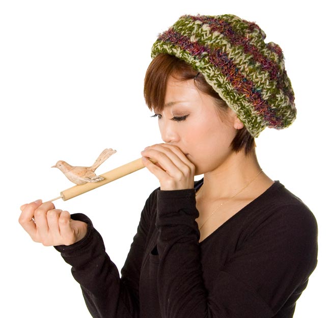 息を吹きこみながら取っ手を伸び縮みさせると、小鳥のようなかわいい音色を奏でることのできる笛です。すべて竹で作られています。現地の職人さんがひとつひとつ手作りした商品は、温もりが感じられるものばかり。手作りなのでひとつひとつ微妙に違うところも味ですね!