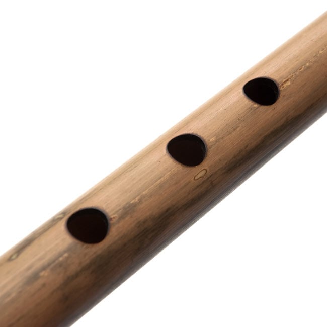 上 ○ ○ ○ 34mm40mm 下 ○ ○ ○ 27mm45mmとなっております。中くらいのサイズのバンスリですので、サイズ的に吹きやすい一本だと思います。なお、演奏されているラーガはBhupaliです。太郎氏の総評は「肉厚でネパールのバンスリみたいな感じ。ちょっと民謡調みたいに感じる」との事です