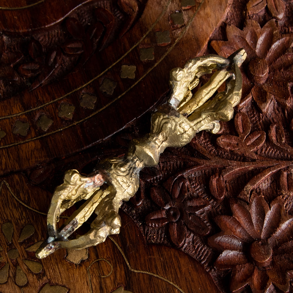儀式の時には、右手に金剛杵、左手に金剛鈴を持ちます。金剛杵は男性原理である「方便(他者を救済する力)」・金剛鈴は女性原理の「智恵(真理)」を象徴し、その両方を手にすることは、それらの合一を意味すると考えられています。神秘的なデザインが美術品としても価値ある一品です。■鳴らしてみました