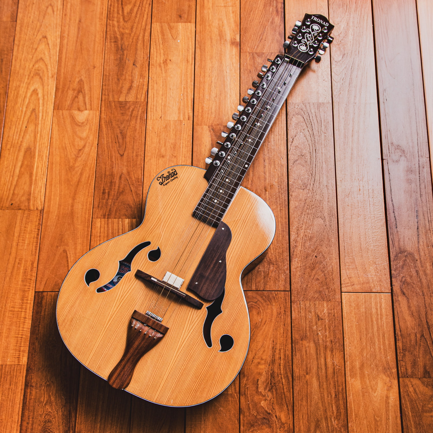 モハーンヴィーナはインド版の共鳴弦付スライドギター。通常のスライドギターでも何音階にも渡る音の変化が楽しめますが、このモハーンヴィーナはそれに共鳴弦をつけ、よりスペーシーで、瞑想的で、幻想的な音が出るように考案されたものです。