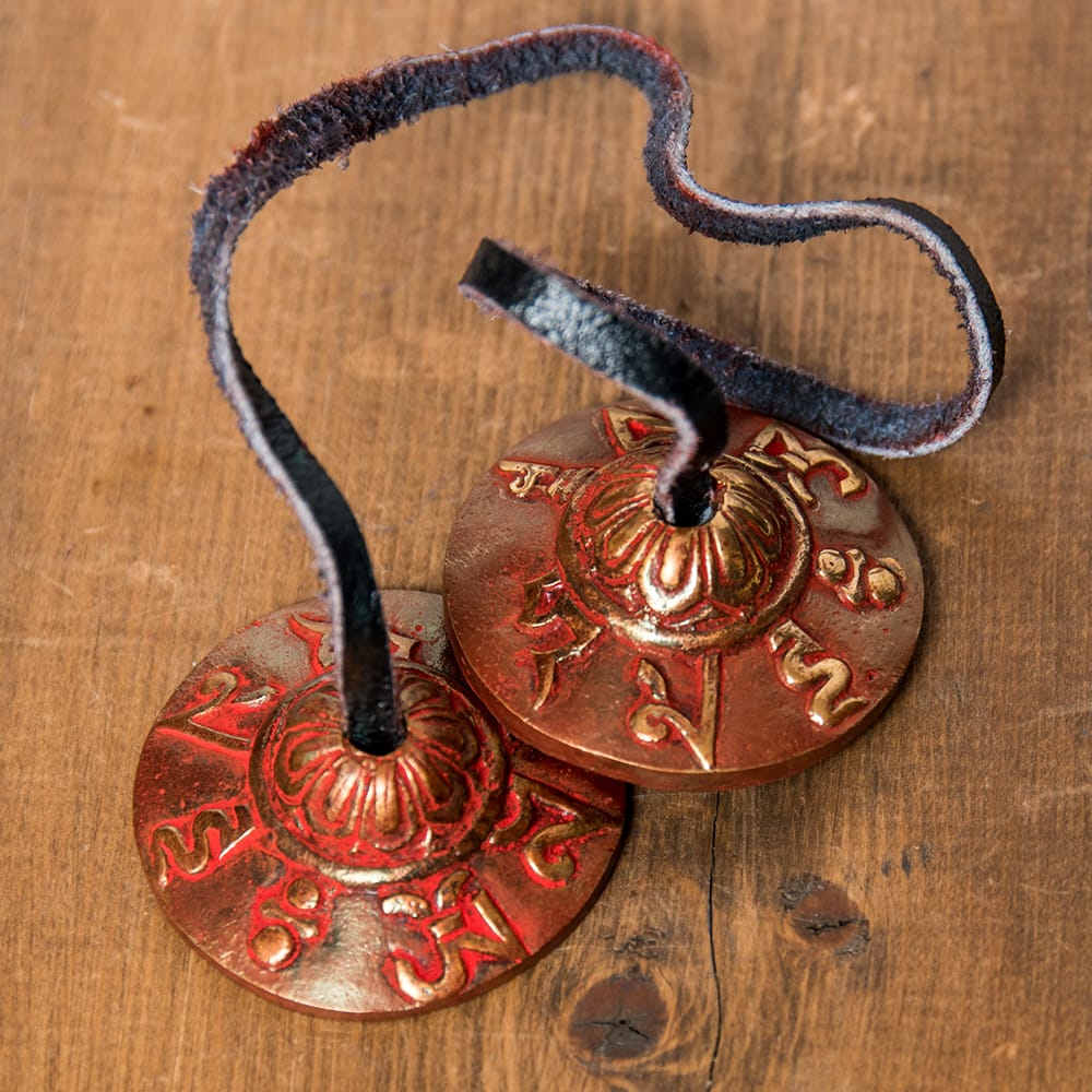 パンチャ・ヴァルナとはサンスクリット語で「五つの色」を意味する語です。宗派や時代により解釈や色の組み合わせは様々ですが、揺るがない信念である「金剛」や「精進」などの性質が割り当てられているとされています。ネパールの宗教音楽に使われているディンシャ。国が違い名前は違っても、文化圏が一緒なので、インドのマンジーラと言われる楽器と大きな違いはありません。