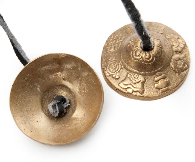両手でそれぞれをぶら下げるように持ち、ゆっくりとぶつけることで、長く澄んだ音が響きます。<