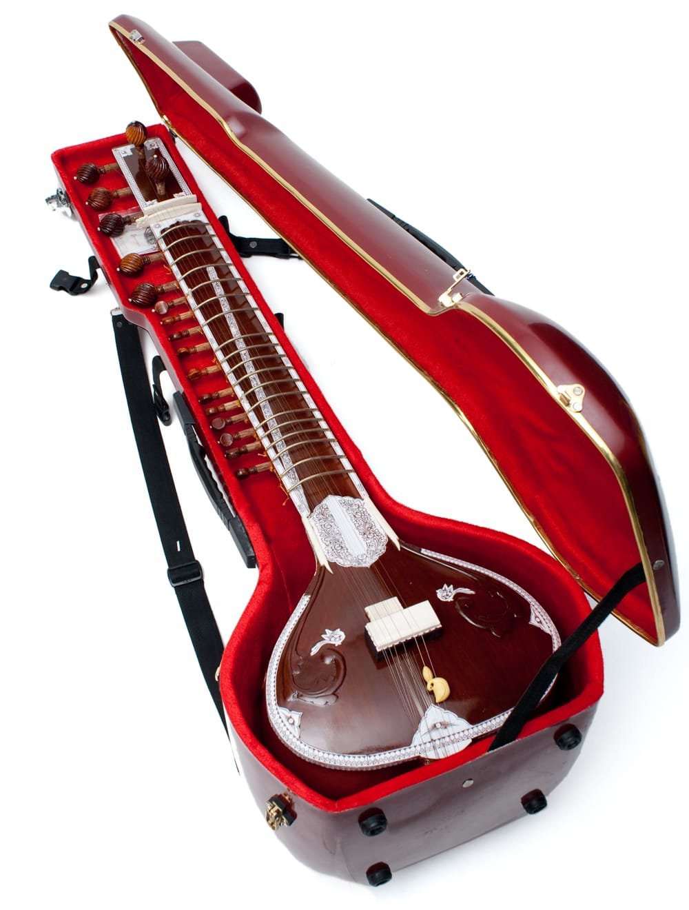 当店のシタールは、シタール本体だけではなく、すぐに始められるよう持ち運びに便利な【グラスファイバー製ハードケース】、シタールを奏でる為の【ミズラーブ(シタール用のピック)】、【交換用弦セット】、【シタールのチューニング説明書】がセットになっているので、初めての方でも安心して始められます。■シタールについて