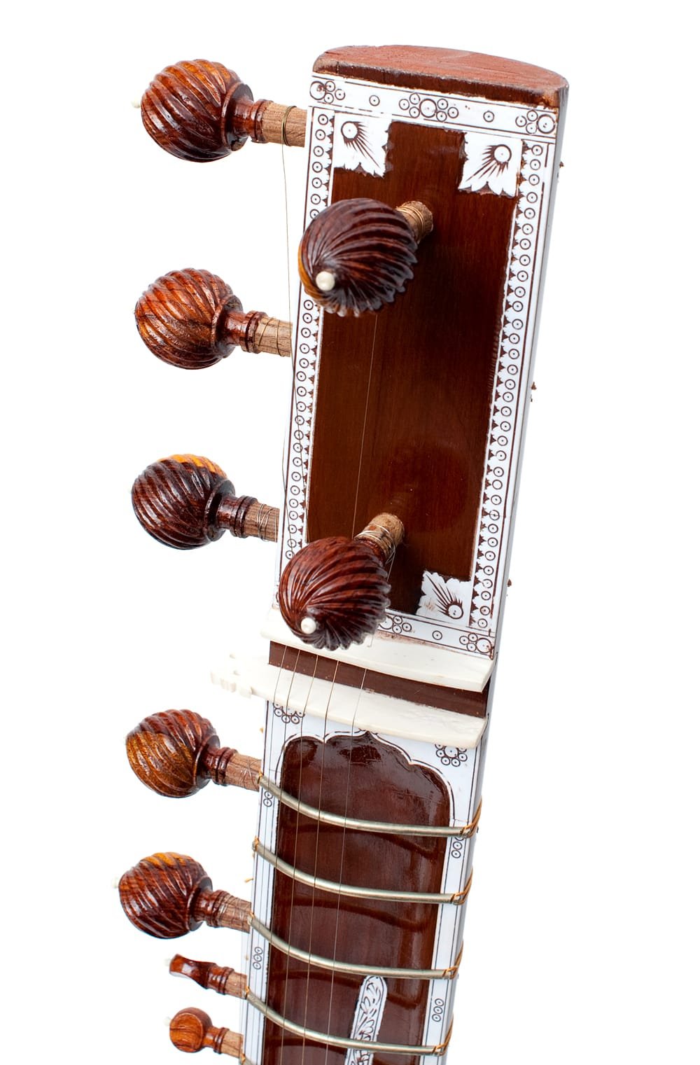 このシタールはシタールの名産地バラナシの学生用・練習用シタールです。バラナシは声楽やカタックダンスで有名なミシュラ家をはじめ、音楽家を排出しているアーティストの住む土地。そこで作られているシタールですが、クオリティとしては一番ローエンドです。インドのローエンドですので、日本のローエンドとはやはり違います。ちょっとシタールを触ってみたい、シタールがどんなものか見てみたいという方へお手頃価格でオススメのシタールです。