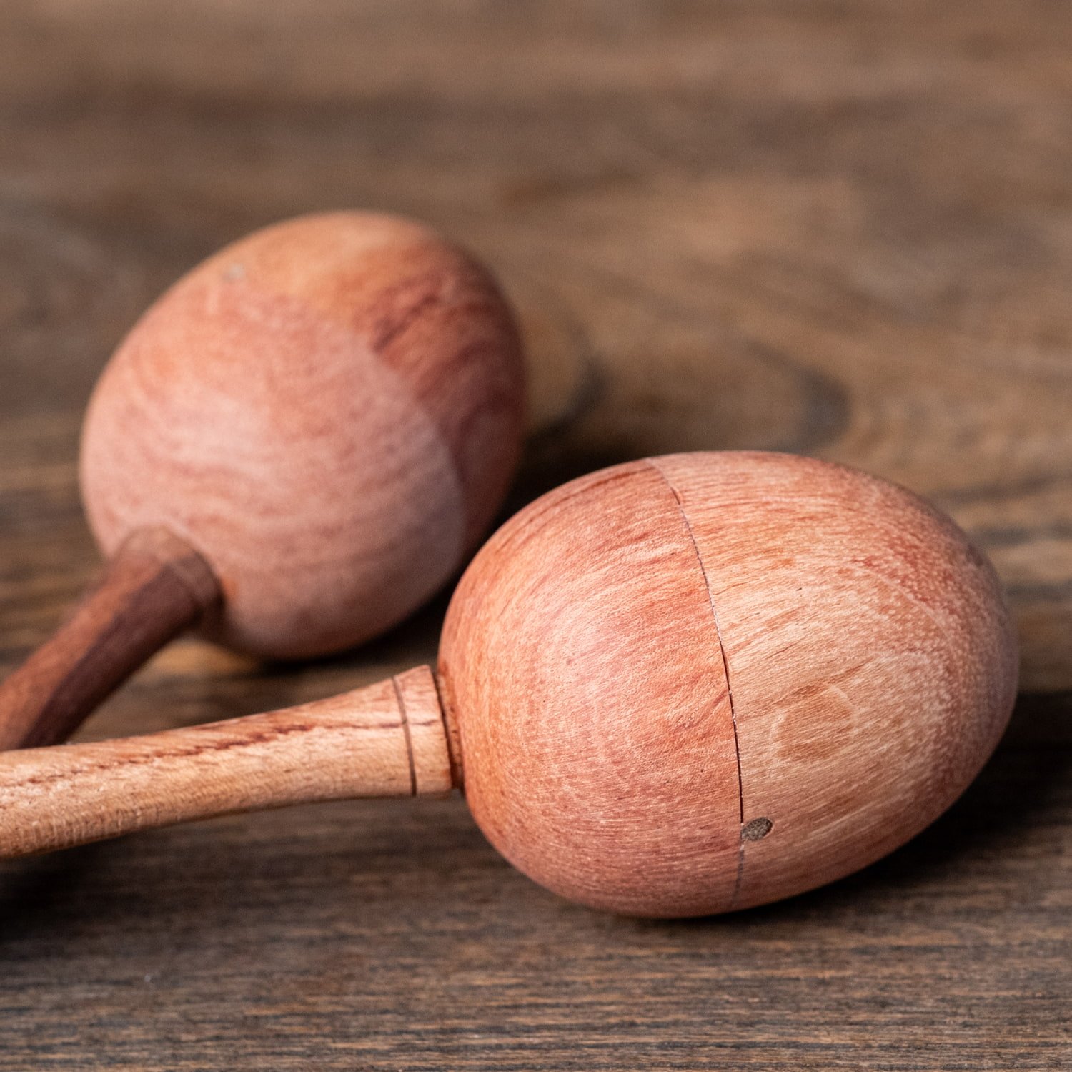 思わず握りたくなる木製のかわいいマラカス2個セットです。小さめのカバン等にも入るので簡単に持ち歩くことも可能ですね。セッションや、そしてお散歩のお供にそっと忍ばせておくのはいかがでしょうか?振るとシャカシャカ優しい音がするので、常に持ち歩いて、楽しい楽器です。プレゼントとしても面白い品物ですね!