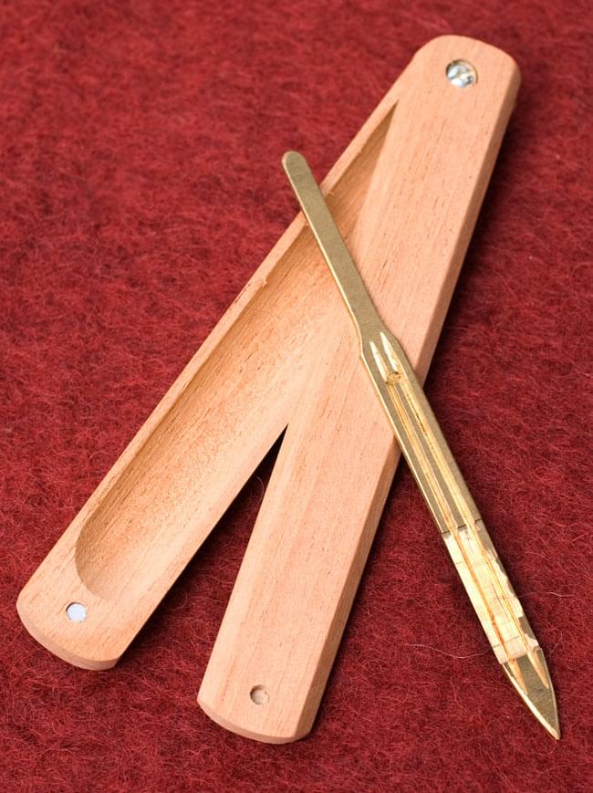 ケースは竹の筒に布が貼ってあるよう。布はチロリアンテープのような綺麗な布で、見た目も良く、持っていて嬉しくなります。
