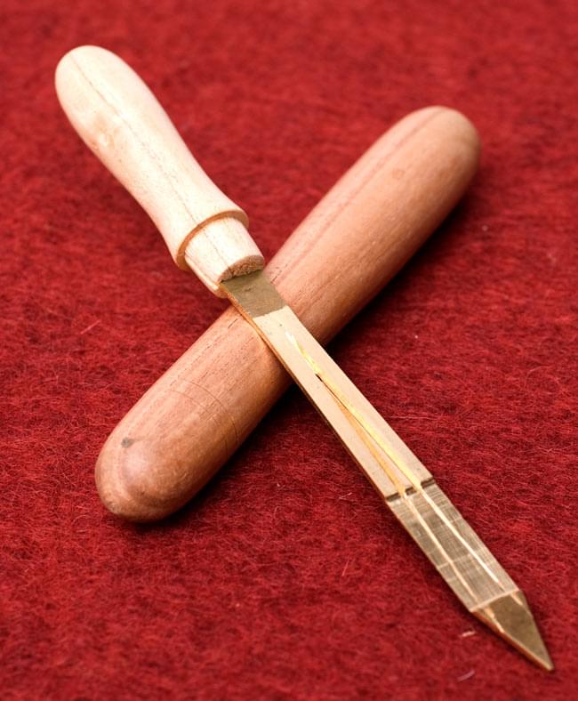 ケースは竹の筒に布が貼ってあるよう。布はチロリアンテープのような綺麗な布で、見た目も良く、持っていて嬉しくなります。