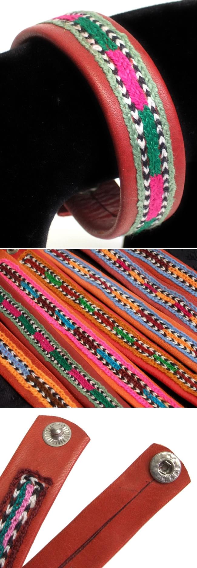 皮製でしっかりとした作りが魅力的なエスニック・リストバンド。かわいらしいカラフルな刺繍がほどこされていて明るい印象です。