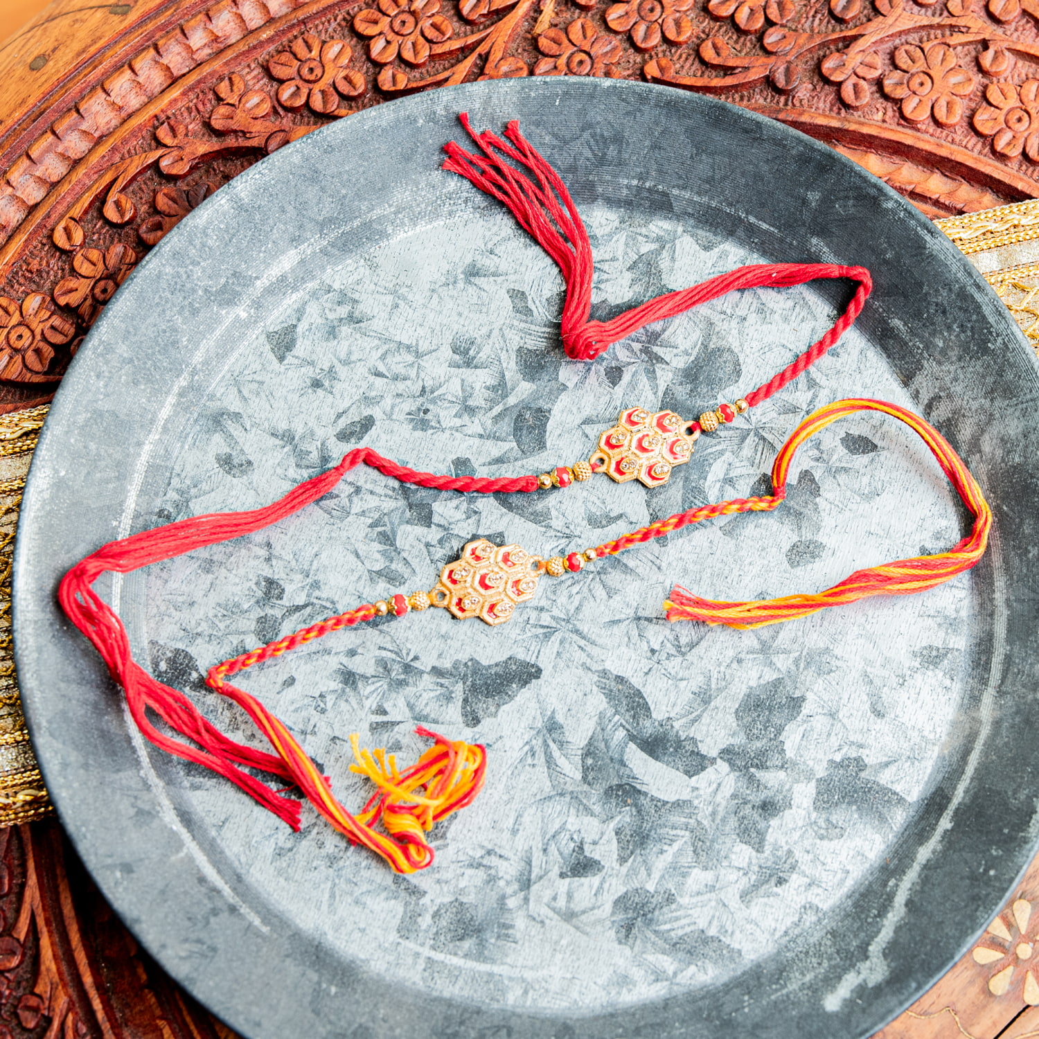 キーワード:ブレス ブレスレット アンクレット ラクシャバンダン Rakhi Raksha Bandhan ラーキー ギフト ヒンドゥー教 紐ブレスレット お守り 開運 組み紐 エスニック エレガント