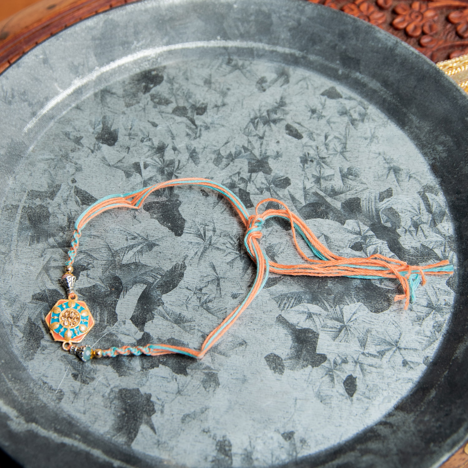 商品のキーワード:ブレス ブレスレット アンクレット ラクシャバンダン Rakhi Raksha Bandhan ラーキー ギフト ヒンドゥー教 紐ブレスレット お守り 開運 組み紐 エスニック エレガント