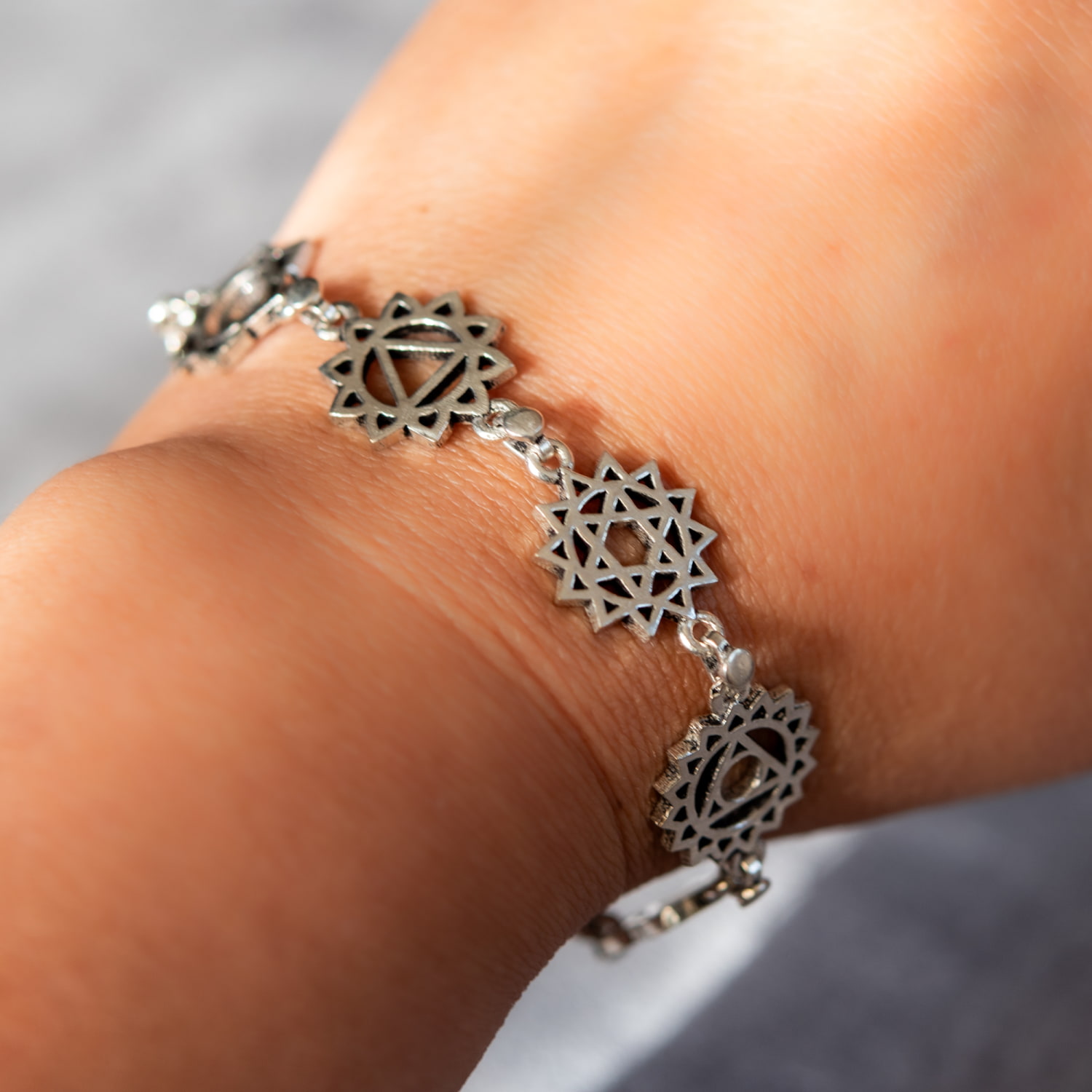シルバーカラーのシンプルデザイン チャクラブレスレット 大