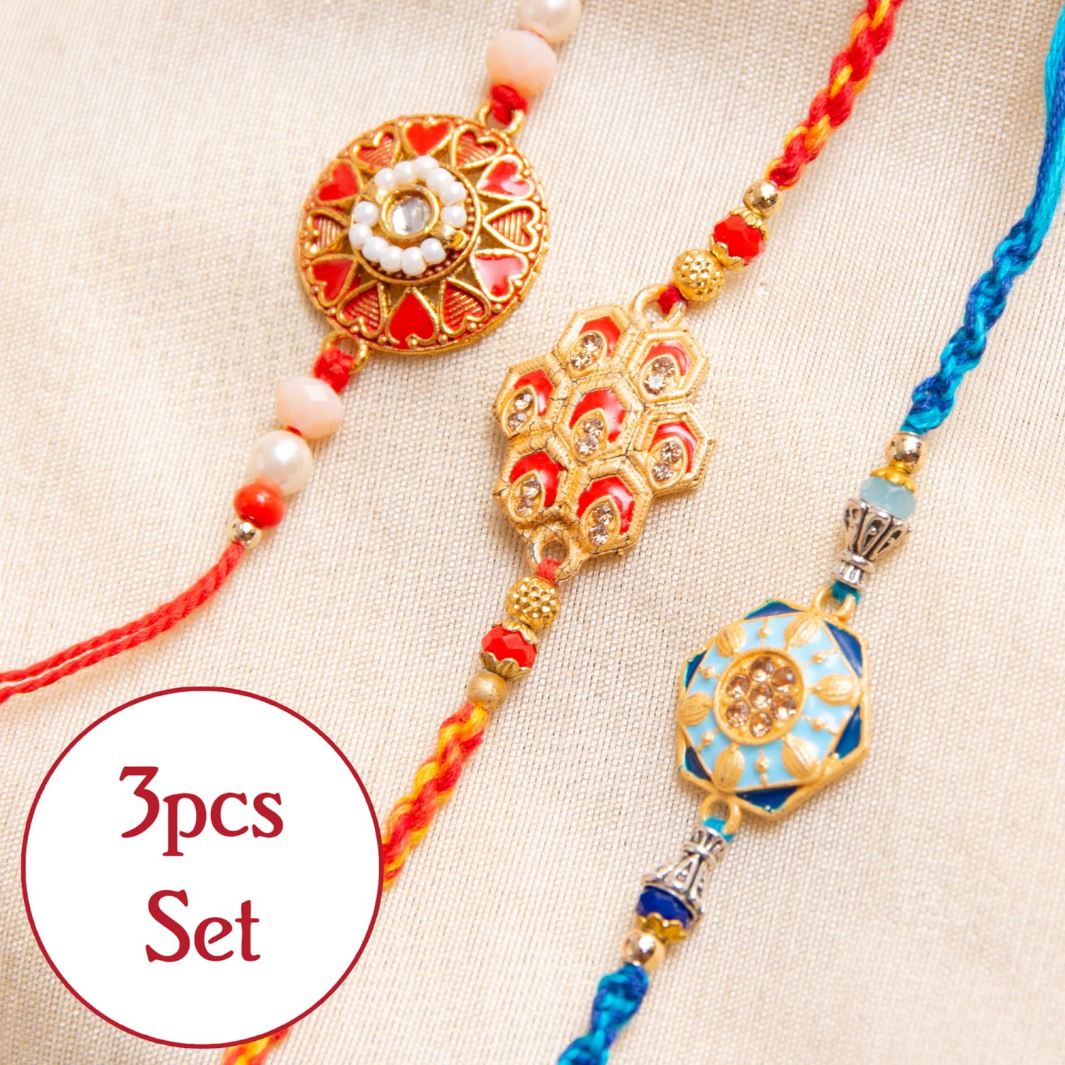 トップのモチーフにはそれぞれインドらしさが光る、素敵なデザインです。兄弟の幸運を祈る幸運の意味があるブレスレット。特にラクシャー・バンダンの日でなくても、つけていると幸運がやってくるかのようです。