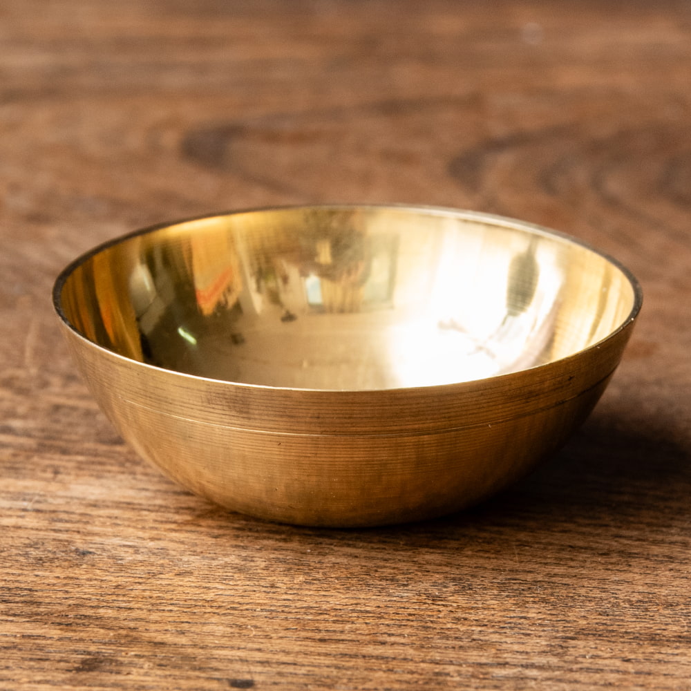 インドで礼拝に使う時に使うブラスの小ボウル。インドではブラスは穢れがつきずらいとされ、神様の像の素材としても多く使用されています。