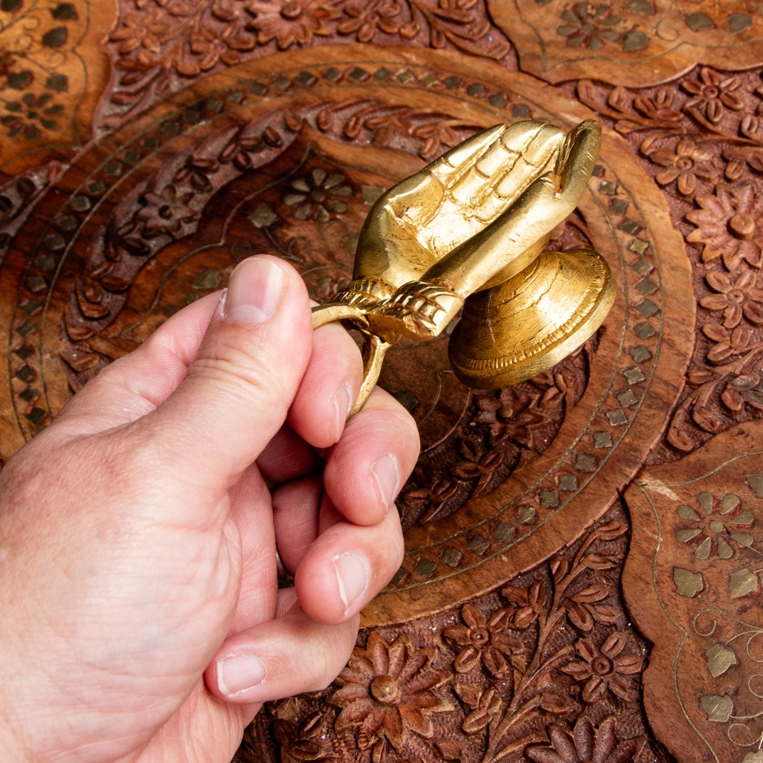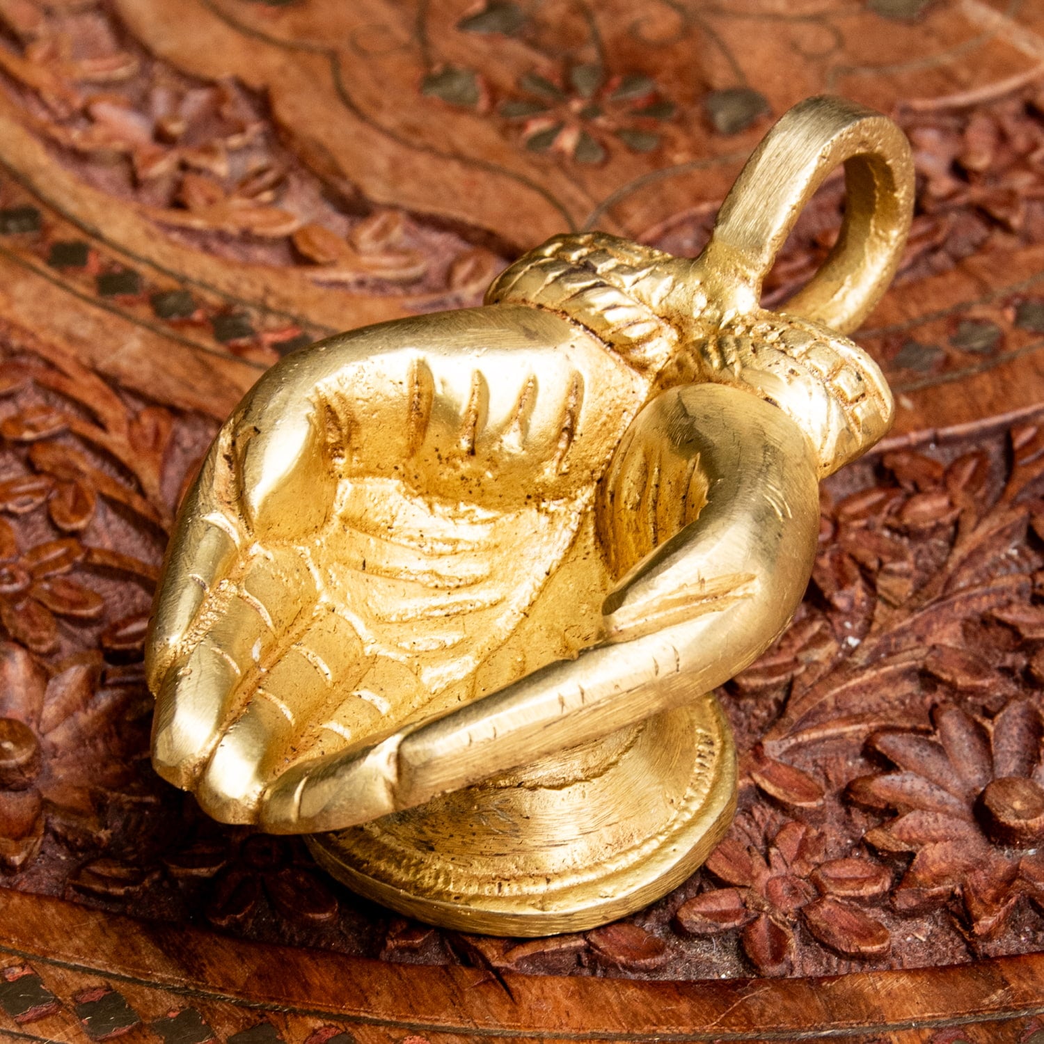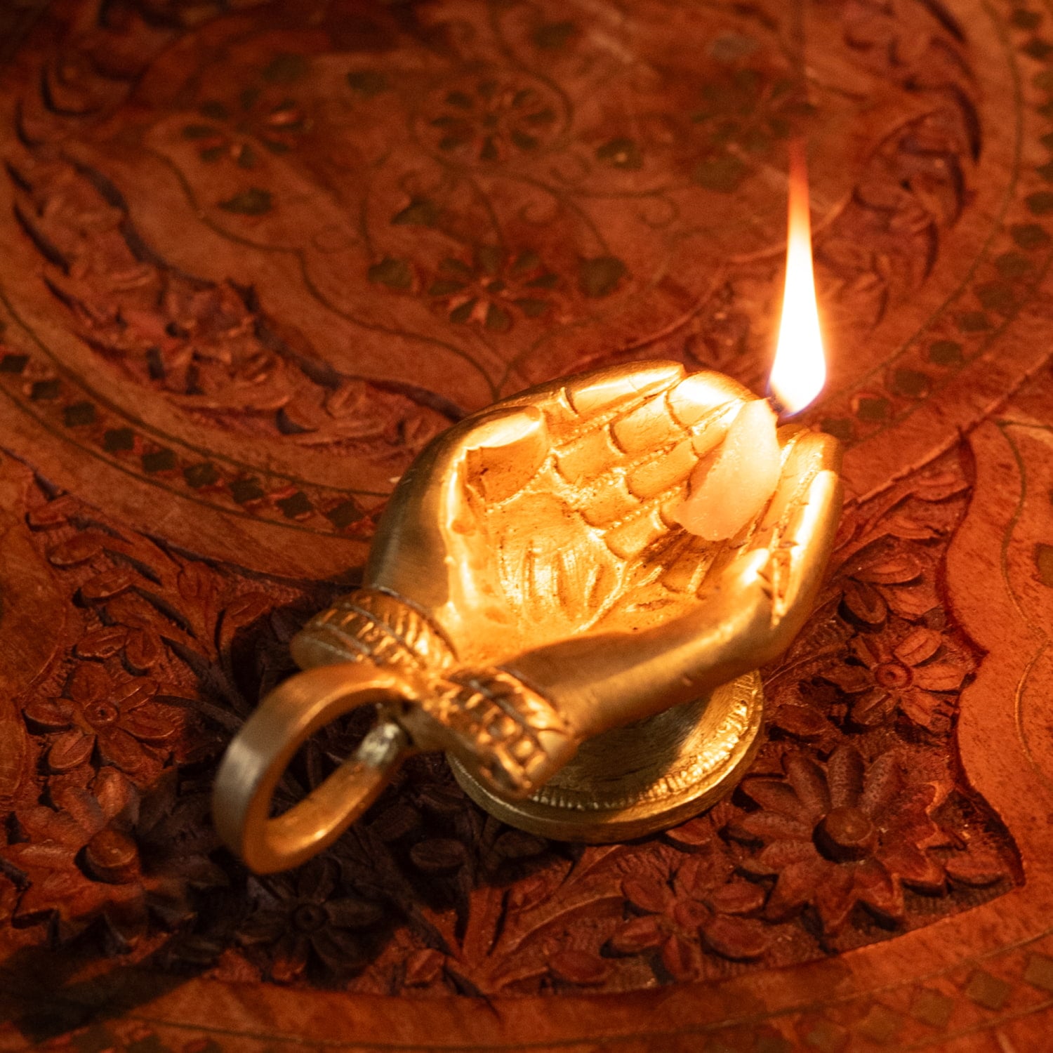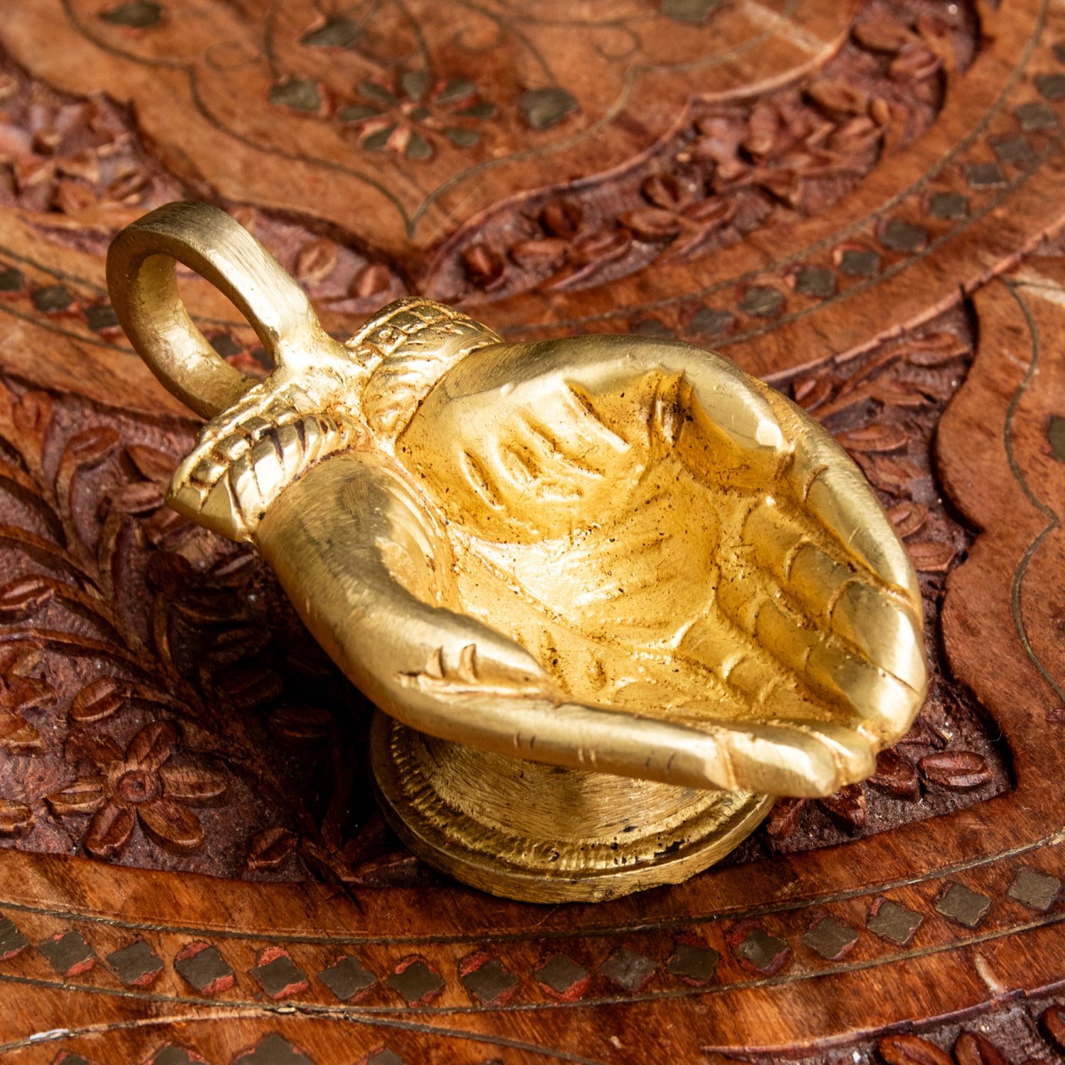 ブラスのオイルランプ - ラクシュミの手 台座付き
