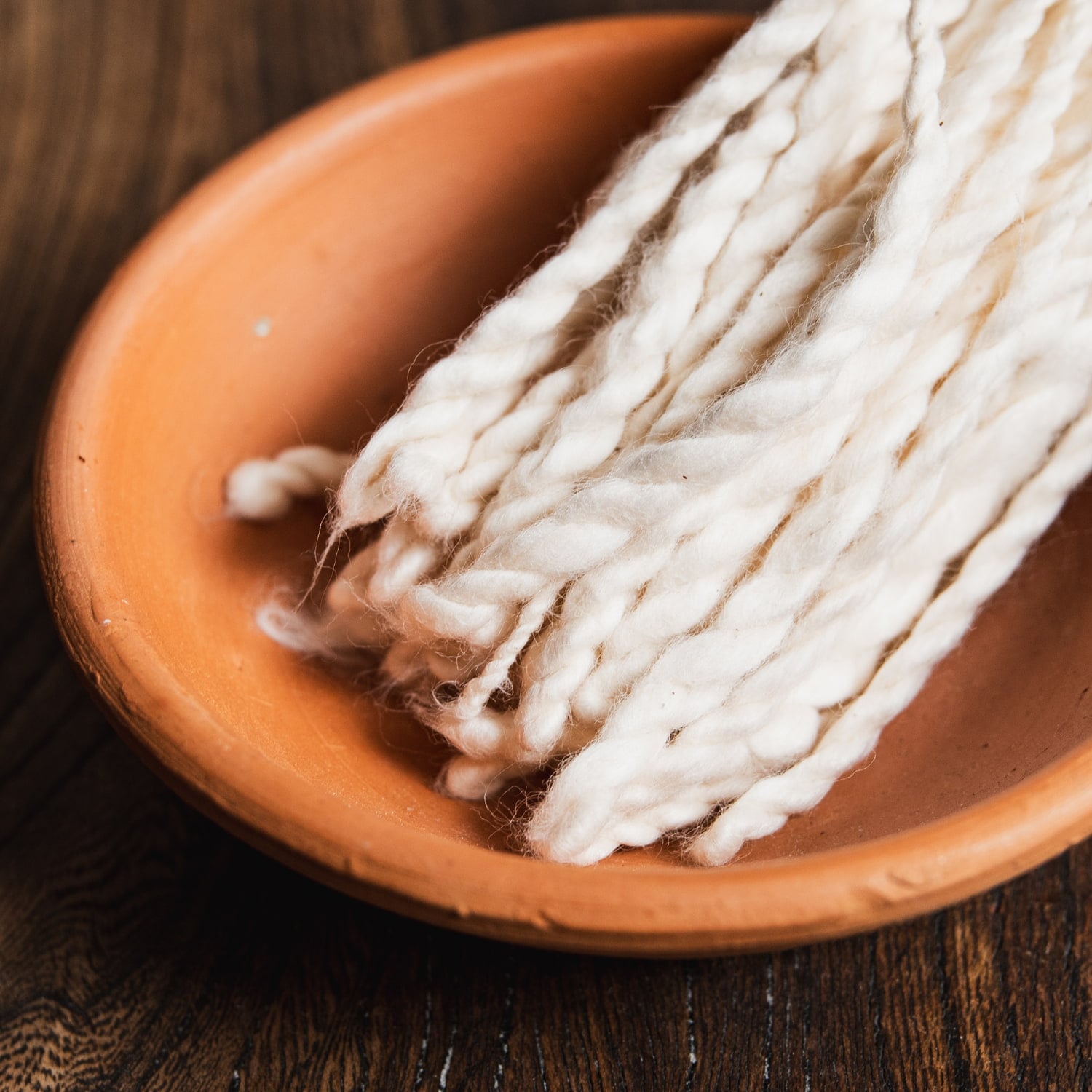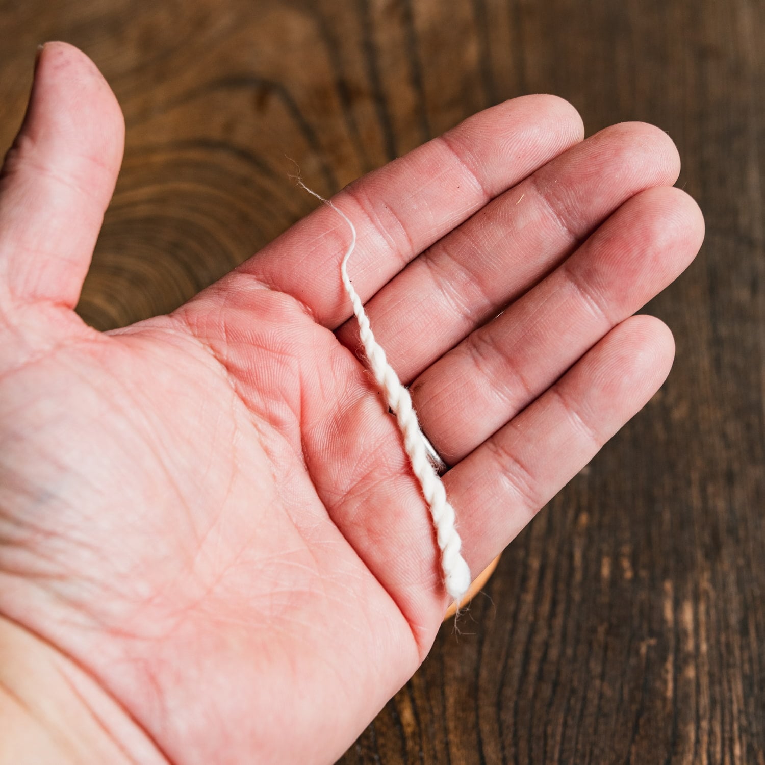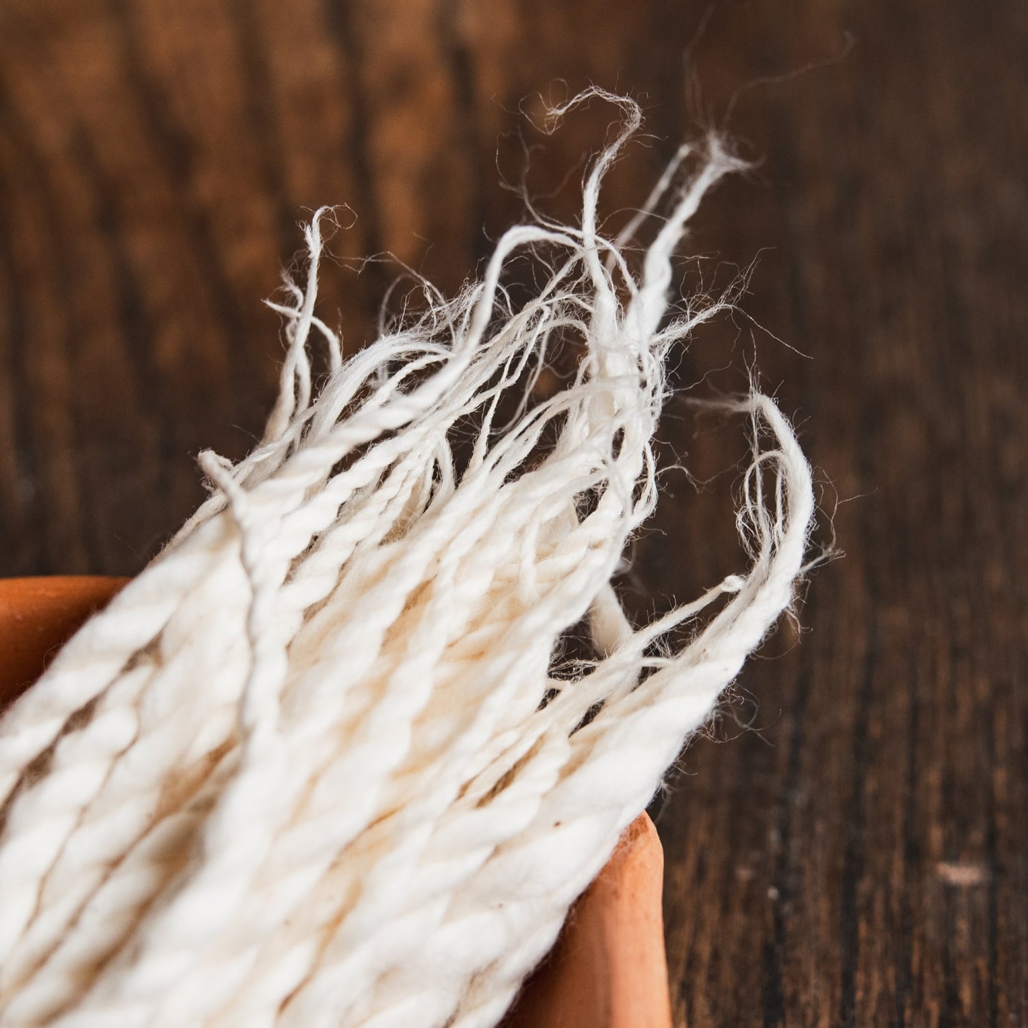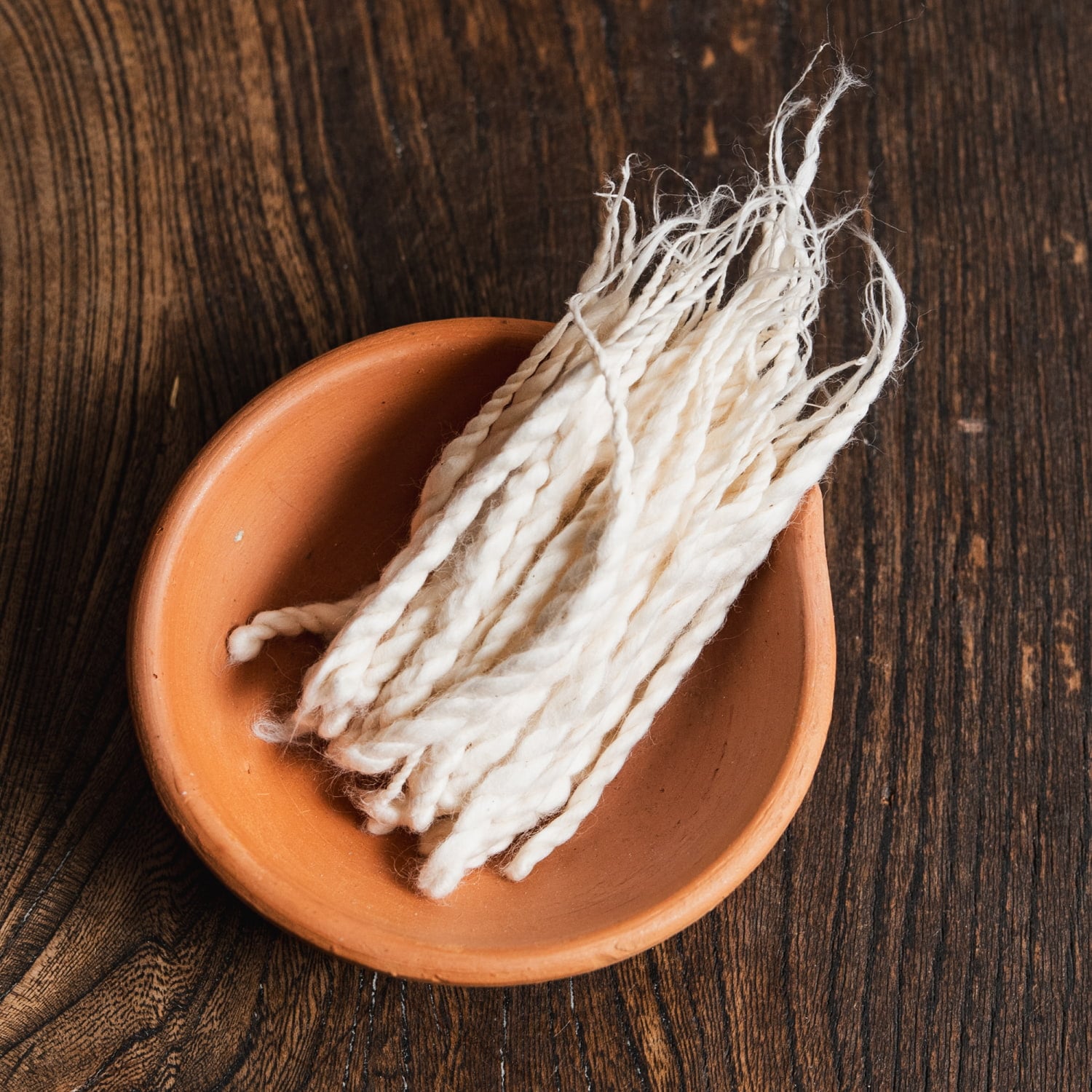 こちらのコットンの灯心は、全部インド人のハンドメイド。ですので一本一本、太さや撚りが違います。丁寧に一本一本を手で作った灯心は主に自宅の小さな祭壇や、お寺での礼拝用に使用されます| 素材 | コットン |