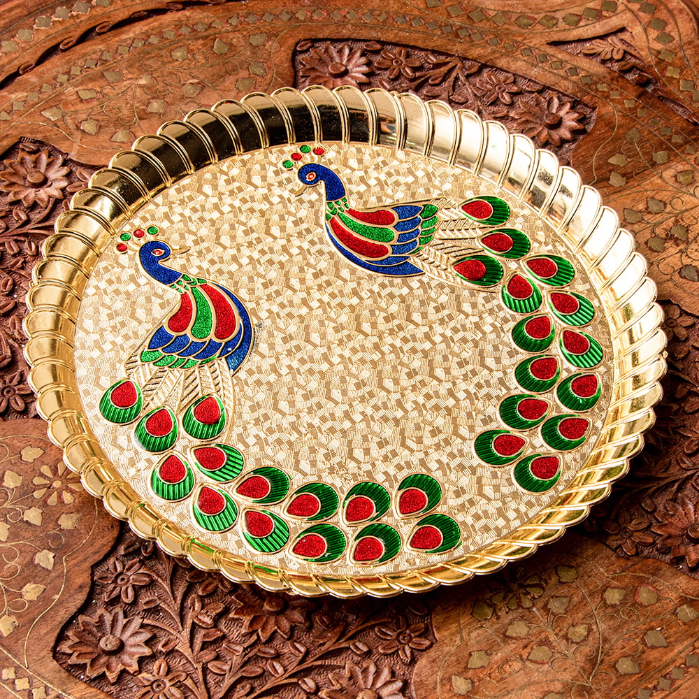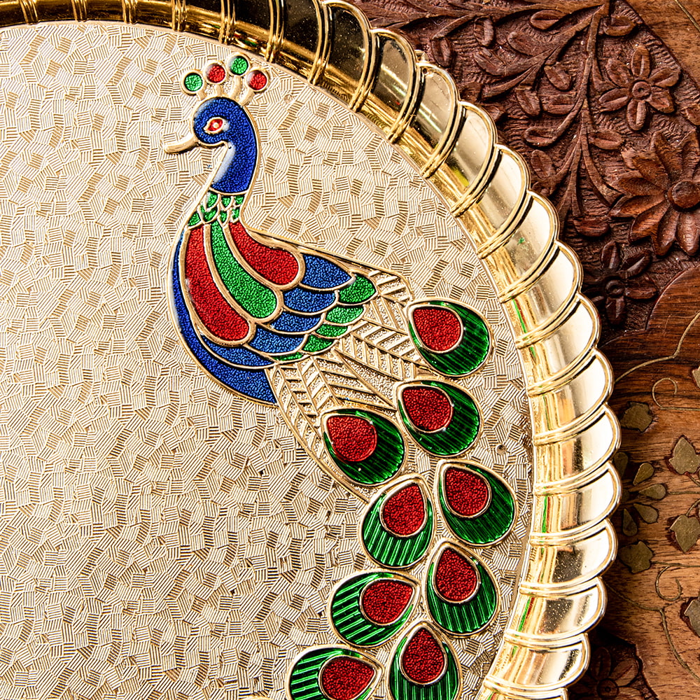 【3個セット】【約25.5cm】インドの礼拝皿 プージャターリー 孔雀 通販店