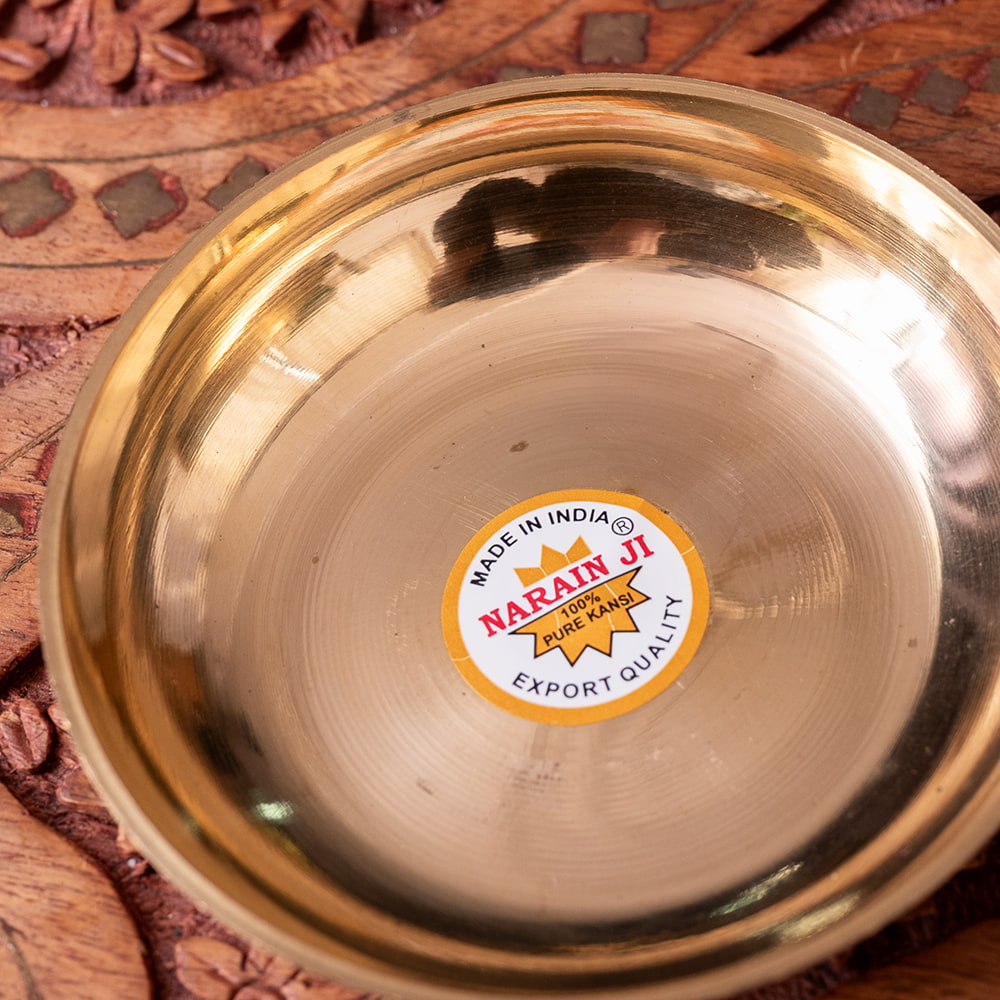 ブラス製 プージャプレート 艷やかな鏡面加工 真鍮 小皿〔直径:約9.5cm〕 x 3個