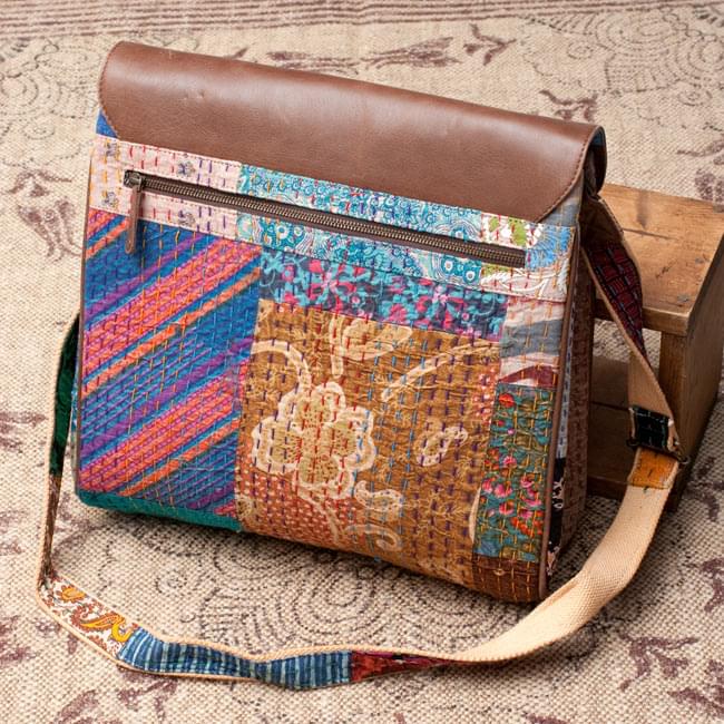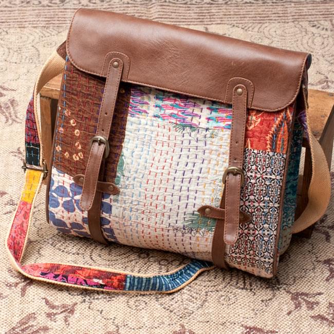 お送りする商品はこちら。とっても作りの良い一点物のショルダーバッグです。ラリーキルトを繋ぎあわせて一品づつ丁寧に手作りしてあります。
