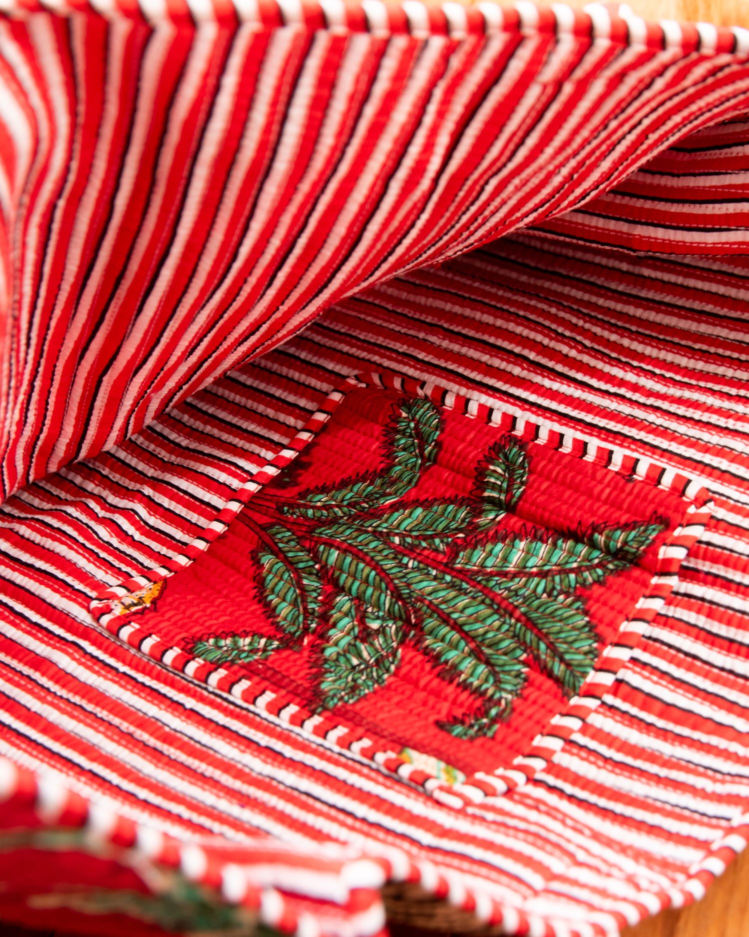 表は派手派手なプリント柄ですが、中はシンプルなストライプ柄。ちらっと見えるストライプも可愛いのですが、実はこれリバーシブルでも使えちゃうのです。表裏をひっくり返したら、ストライプのシンプルなバッグに早変わり。どっちも可愛いのでどちらを表にするか迷ってしまいそう。1つで2度楽しめるお得なバッグです。素材 | コットン |