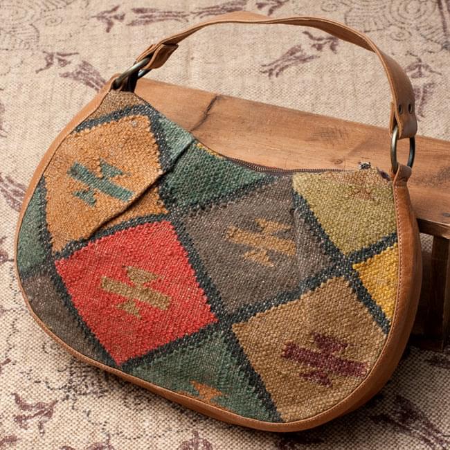 〔一点物〕伝統を紡いだ インドキリムのムーンショルダーバッグ