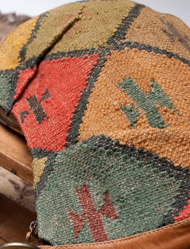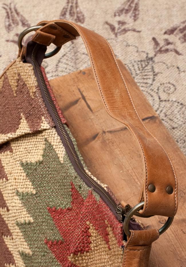 普段使いにぴったりな、インドキリムとレザーで作られた一点物のショルダーバッグです。