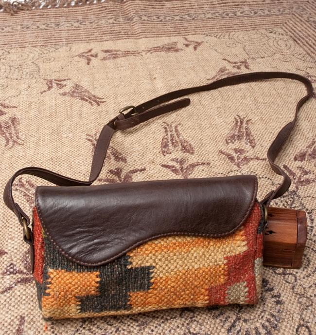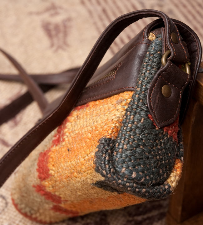 お送りする商品はこちら。とっても作りの良い一点物の大きなショルダーポーチです。インドキリムを使用し一品づつ丁寧に手作りしてあります。