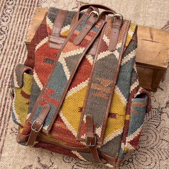 〔一点物〕伝統を紡いだインドキリムのバッグパックの商品写真 4枚目 拡大写真です