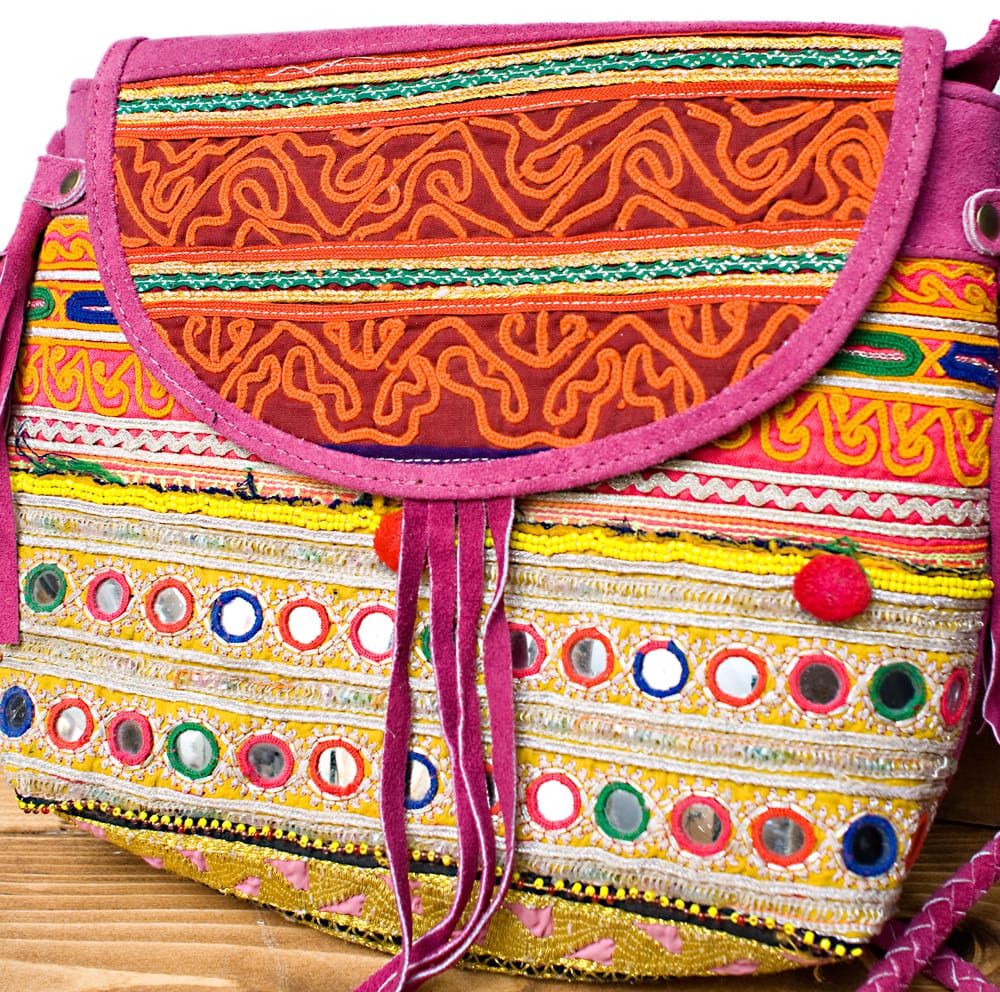 アラブ諸国の古布を1枚1枚配置し、パッチワークのようにつなぎ合わせたバッグです。色鮮やかなカラフルな布地に、ビーズやミラーワークがほどこされていたりと、存在感たっぷりのバッグです。古布が1枚1枚職人の手によって合わさり、バッグに生まれ変わる・・・その配色は世界にひとつだけ。まさにどのバッグにもオンリーワンの特別感があります。■アラブ諸国の古布