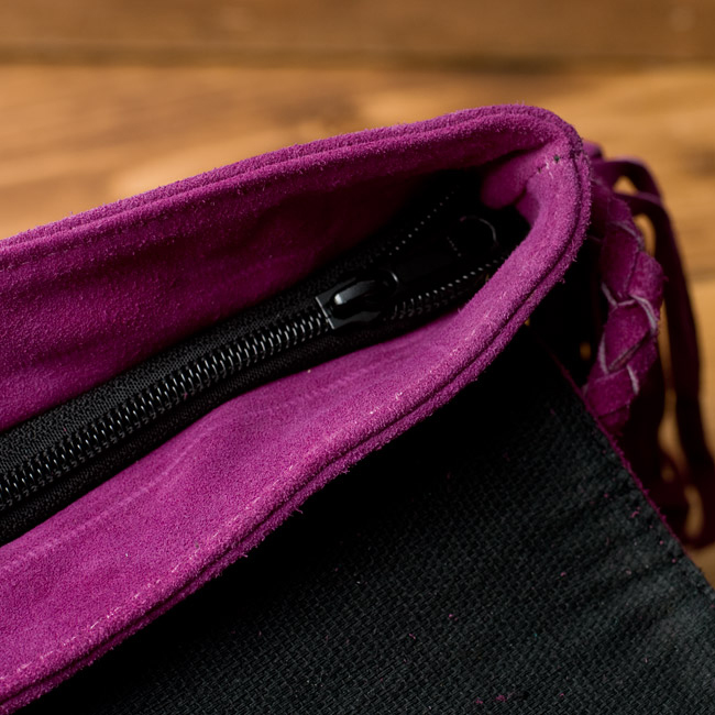 ストラップはスウェード生地を編みこんで作られています。