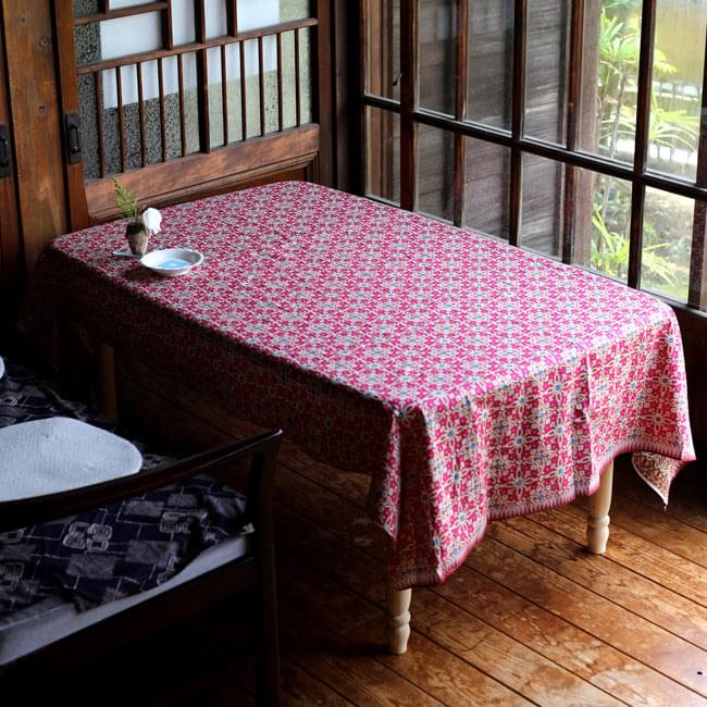 大きさも十分なのでテーブルクロスやソファーカバーへ。他にもカーテンやベットカバーとして、アジアンなベビースリングの材料としてなどなど、アイデア次第でいろいろご利用いただけます。
