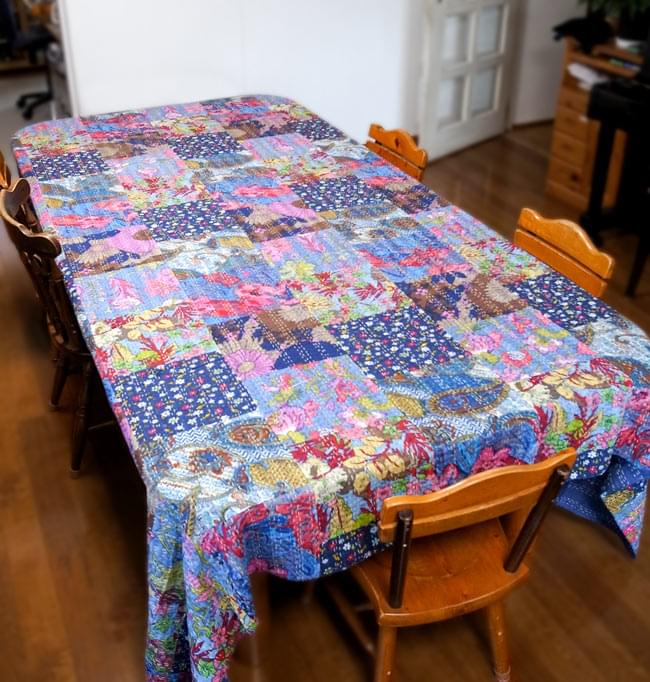 ラリーキルトの大判マルチクロスの、全体写真です。