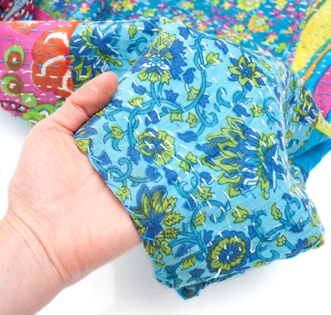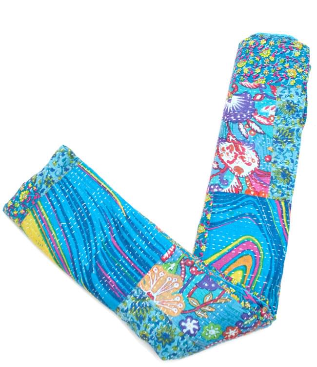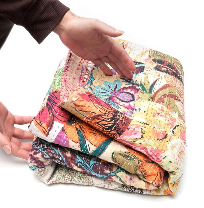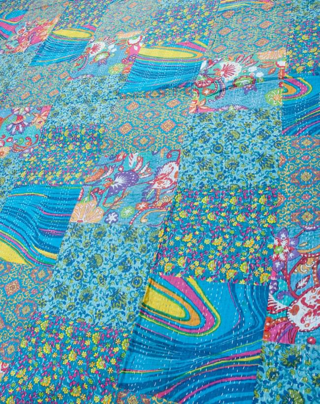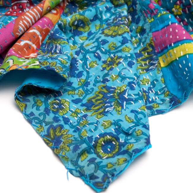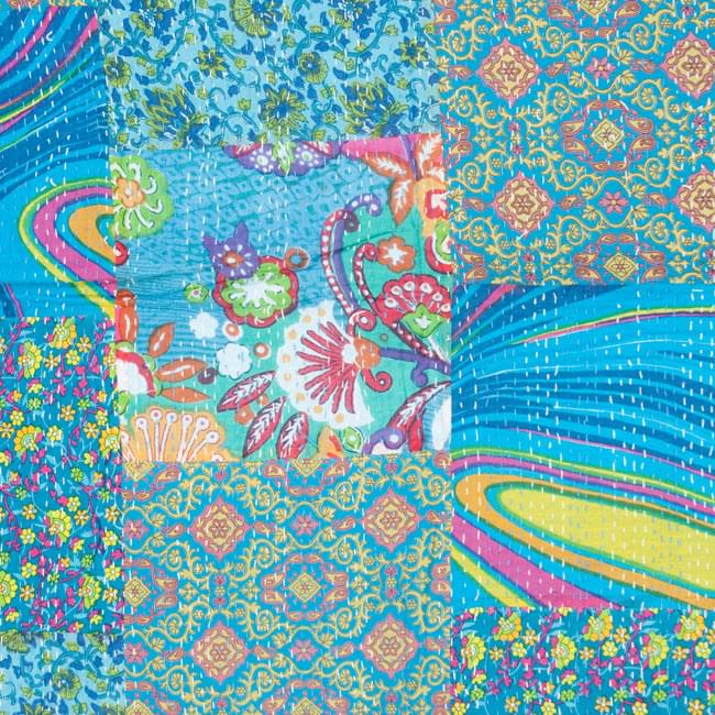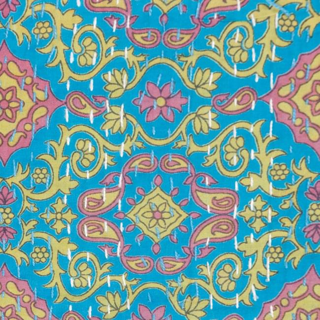 こちらの商品は、インドからやってきたラリーキルト(カンタ刺繍)の大判マルチクロスです。大きさがあるのでラグやベッドカバー、ソファーカバーやタペストリーなどへご利用いただけます。