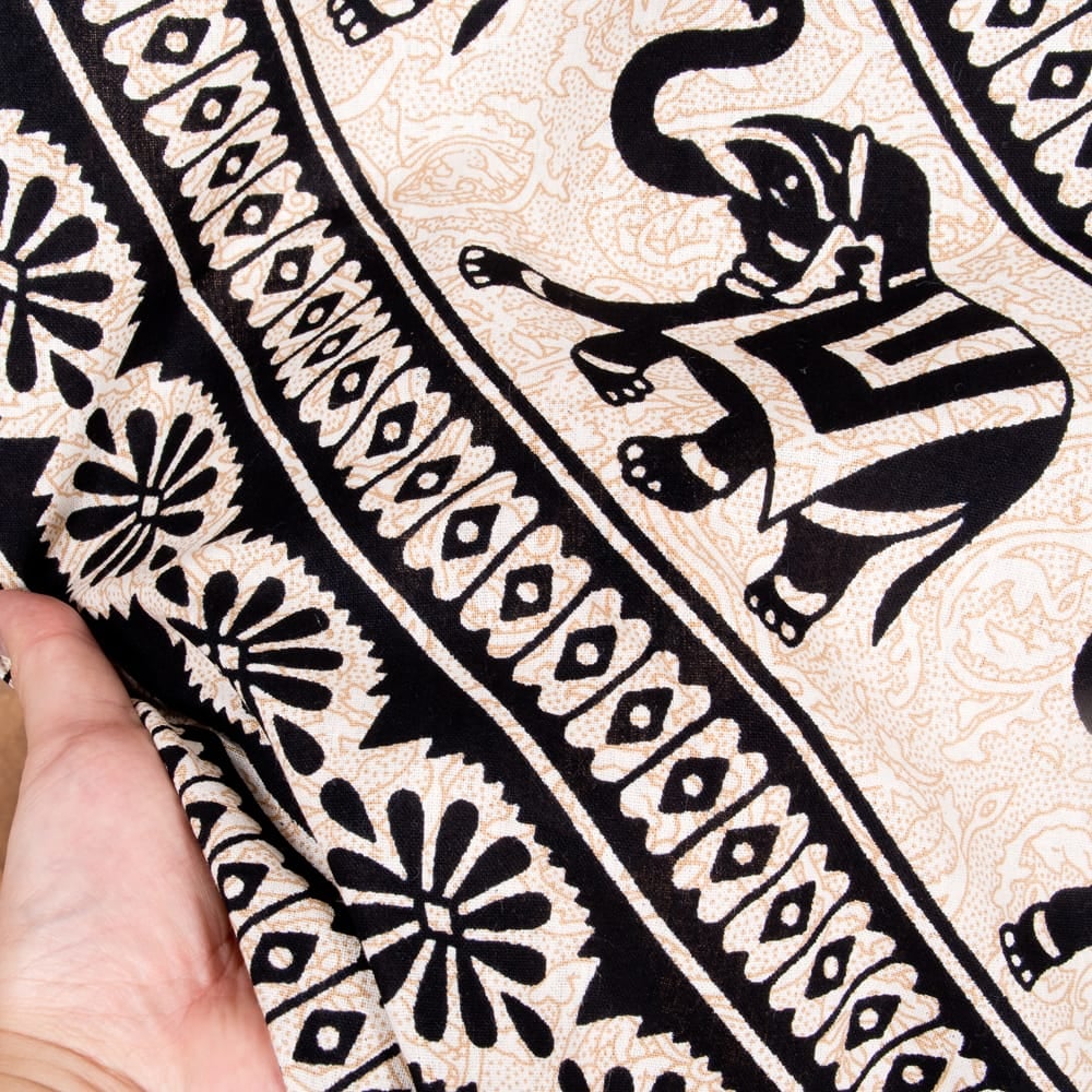 いかにもインドらしいモチーフが魅力的なインド綿のマルチクロスです。インドコットンに、ラクダやゾウ、ペイズリーやマンダラ模様など、インドならではのデザインをプリントしました。