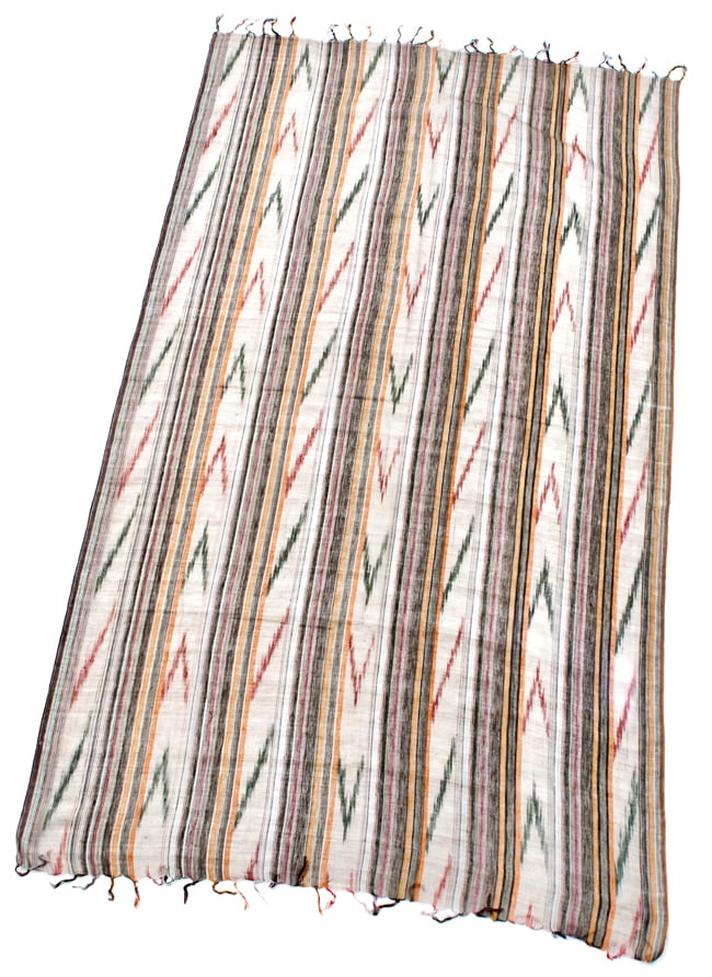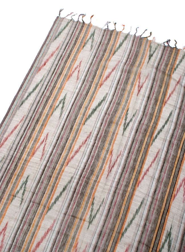 〔170cm×100cm〕ヘビーイカットルンギー - カーキ×白×オレンジ系 通販店