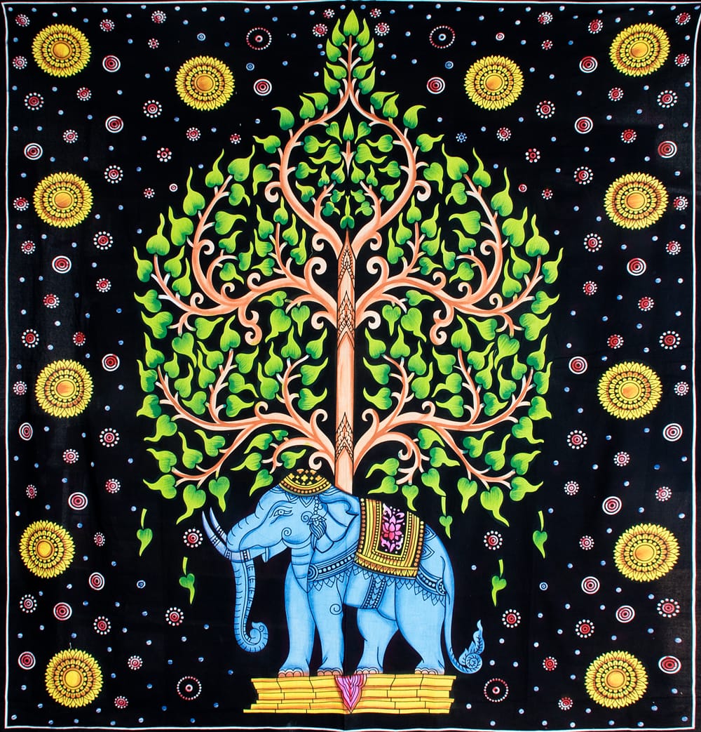 マルチクロス - 象と生命の樹【約220cm×約205cm】