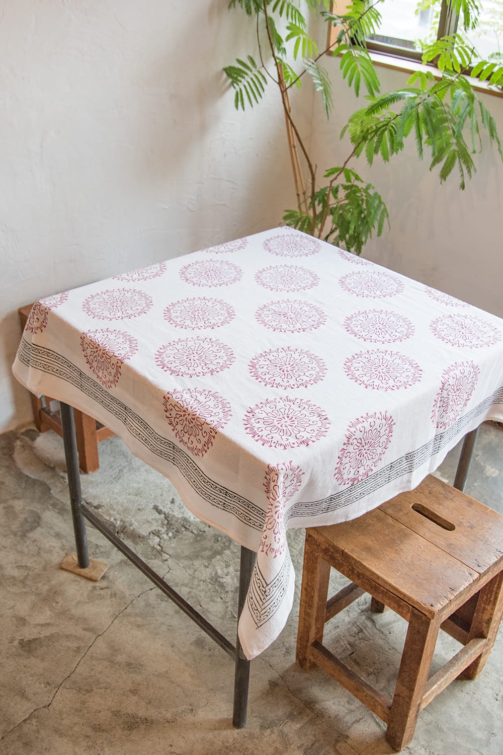 [約106cm x 約106cm]木版染め インド綿テーブルクロス - 花柄 通販店