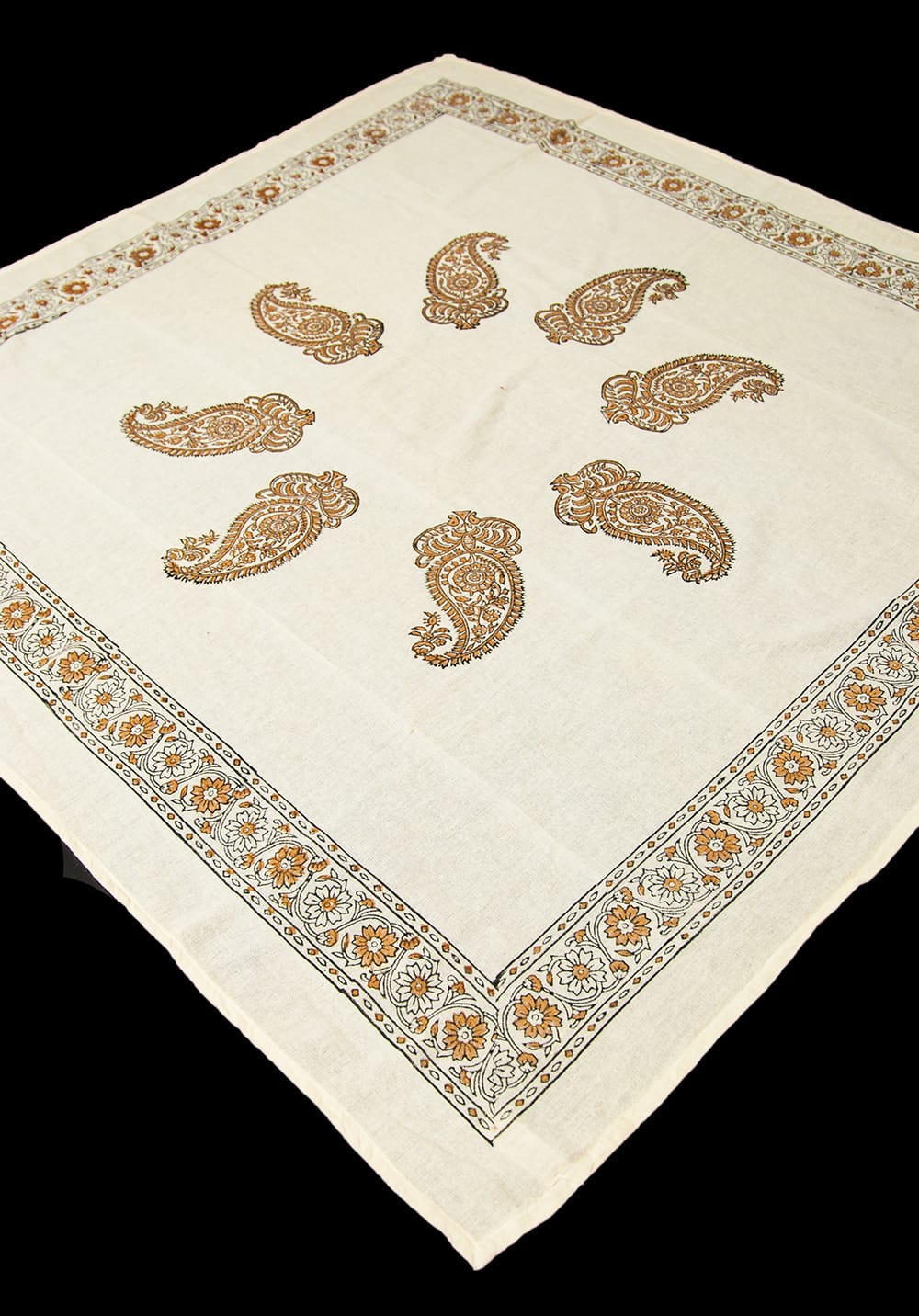 [約100cm x 約100cm]木版染め インド綿テーブルクロス - 生成りペイズリー