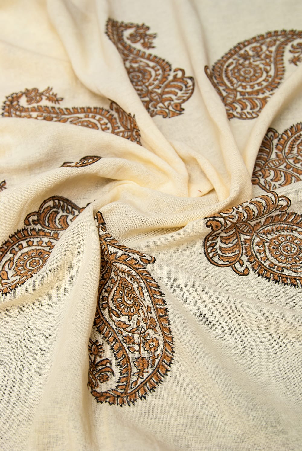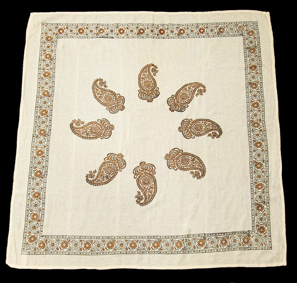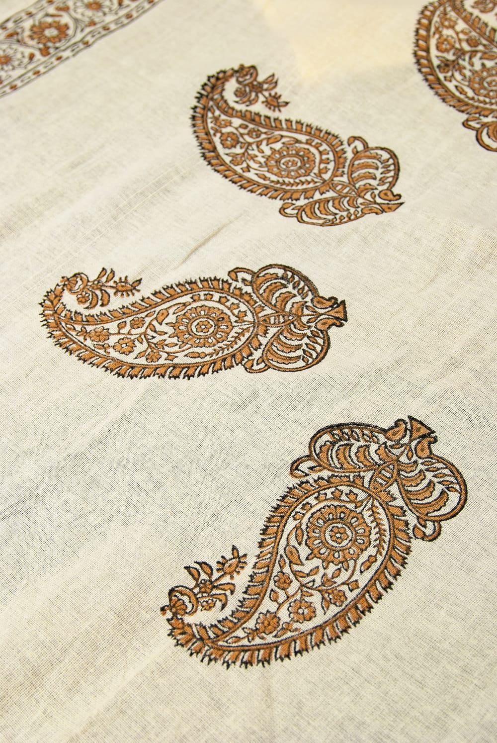 [約100cm x 約100cm]木版染め インド綿テーブルクロス - 生成りペイズリー 通販店