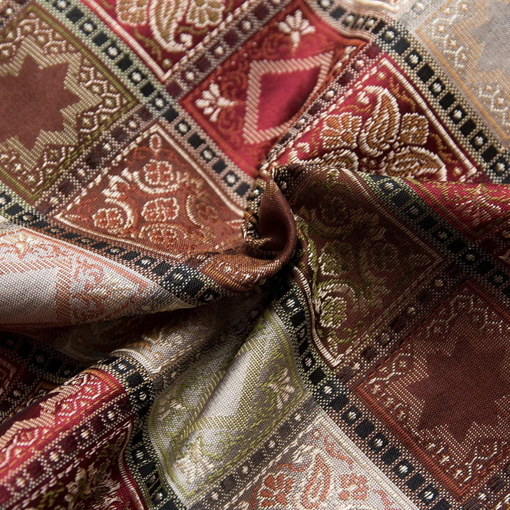秋冬に向けて テーブルカバーを探していて、この金糸入りを見つけました。色は悩みましたが、ブラウン系に。焦げ茶、赤、ベージュと金糸の調和が ゴージャスでありながらシック。とても落ち着いた雰囲気です。裏地は、表地にある一番深い茶色で、全面 きれいに貼られています。リバーシブルで使えます。ティラキタさん 素敵なカバー ありがとうございました。1人の人が参考になったと言っています