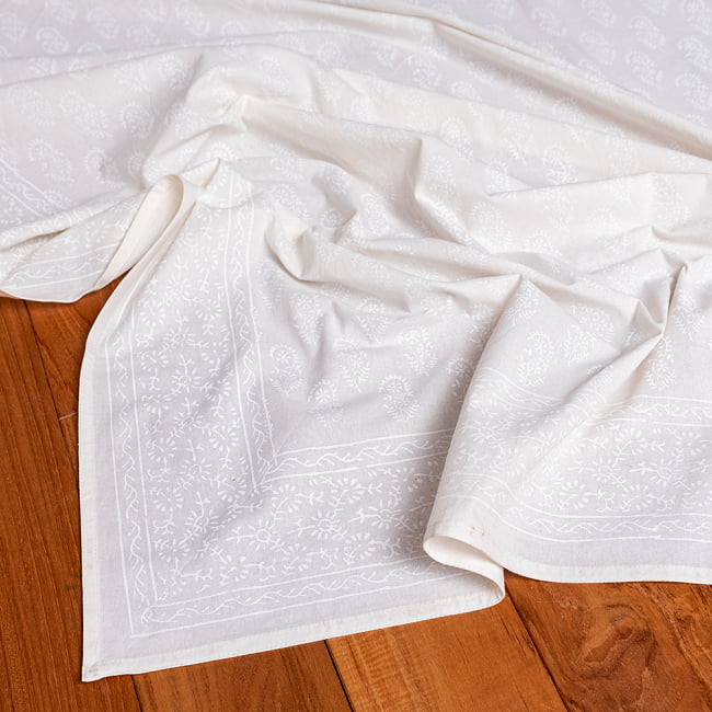 ジャイプル職人手作り サフェードのボタニカルデザイン インド伝統の木版染め更紗マルチクロス〔225cm×155cm〕ベッドカバーやソファーカバー パーテーションなどへの同一カテゴリ商品