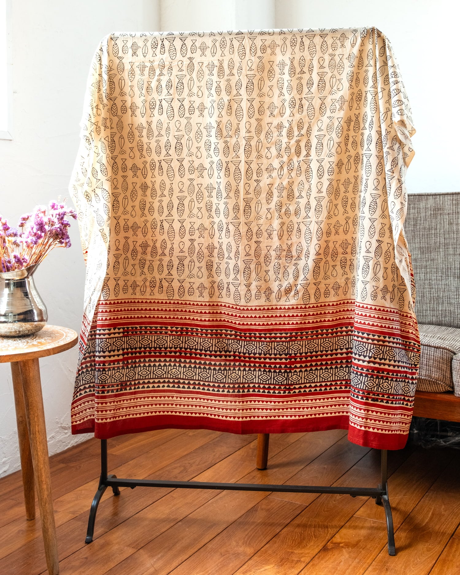 〔各色あり〕ナチュラルカラーのブロックプリントマルチクロス〔約180cm×約110cm〕
