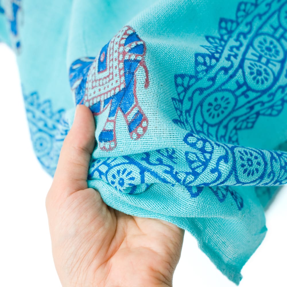 替え用としての購入でしたが、1枚目もブルーに黒の象プリントのインド綿です。