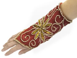 ベリーダンス用のアームウォーマー。コインやビーズ、スパンコールによる花柄の装飾がきれいなベリーダンス用の衣装です。
