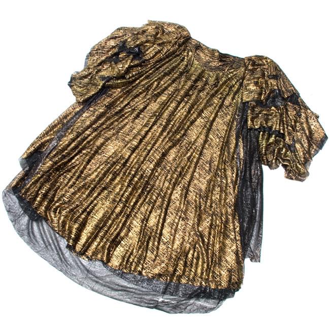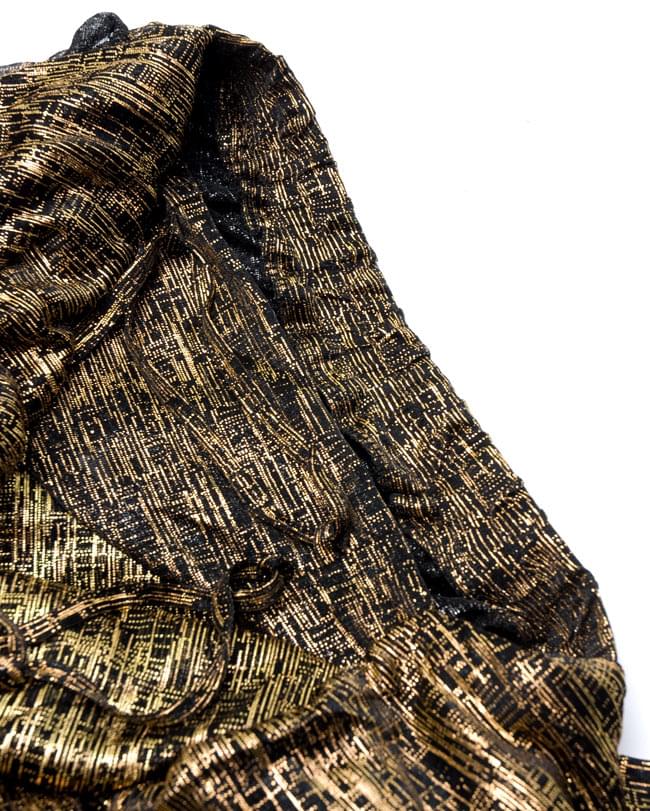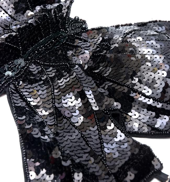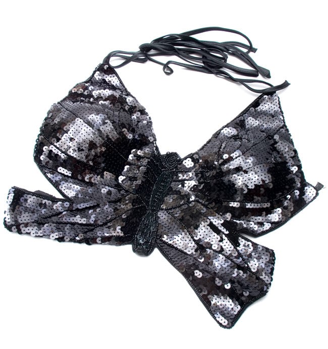 ブラには全面にスパンコールが付いていて、光をキラキラと反射します。また、スカートにも光る糸が織り込まれていますので、全体として大変豪華に見えます。このセットをベースにして、ヒップスカーフを巻いたり、アクセサリーを着けて豪華にしていってもいいですね。