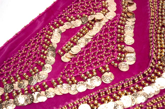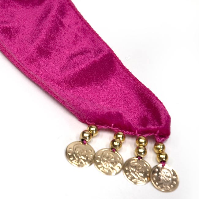 ヒップスカーフとしてだけでなく、ベールや、小さめのショールとしても使用できます。優しい手触りのヴェルヴェットと、コインの取り合わせがゴージャス感を感じさせる一品です