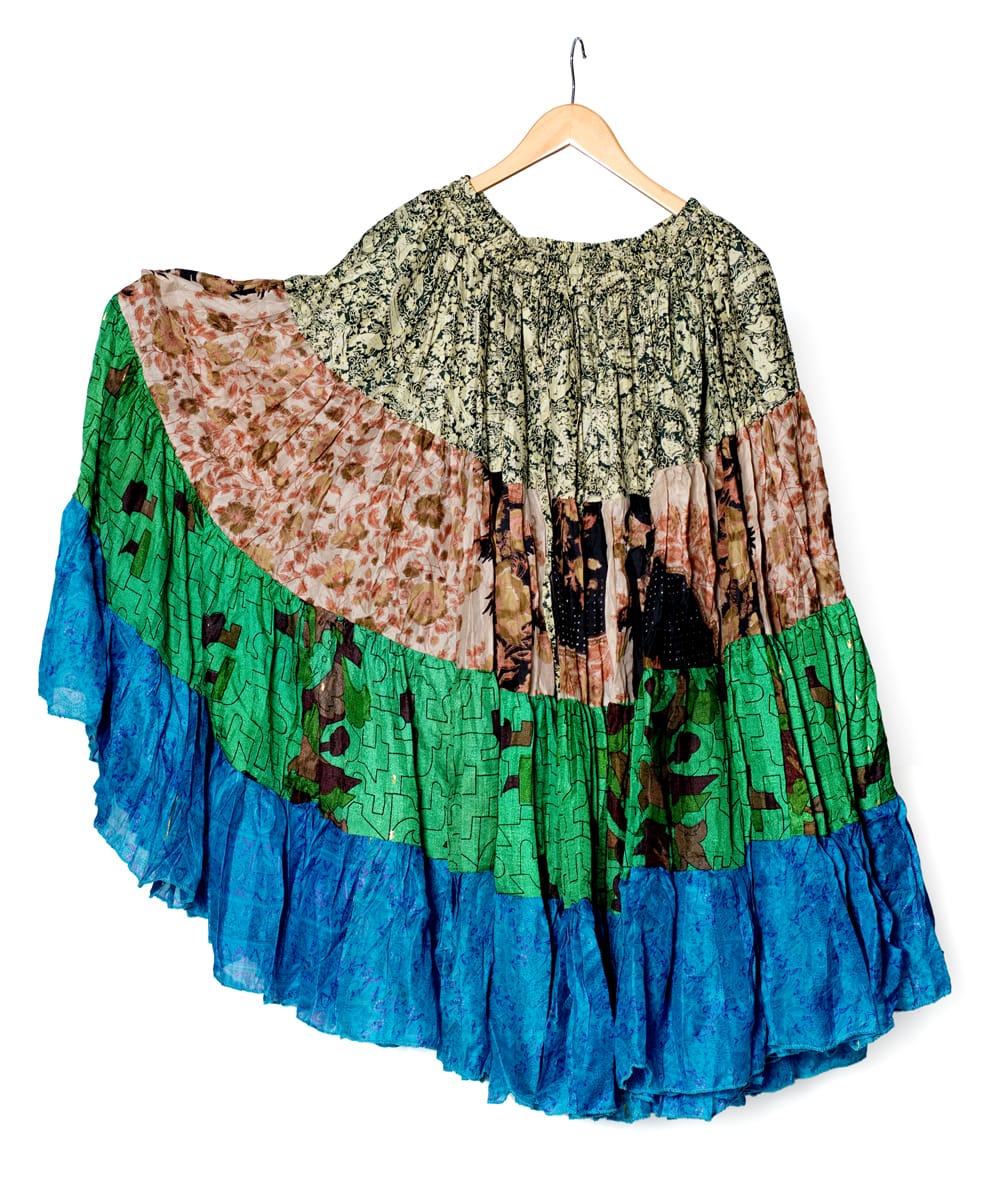 25ヤード アンティークサリーのジプシーパッチワークスカート4段【90cm】 通販店