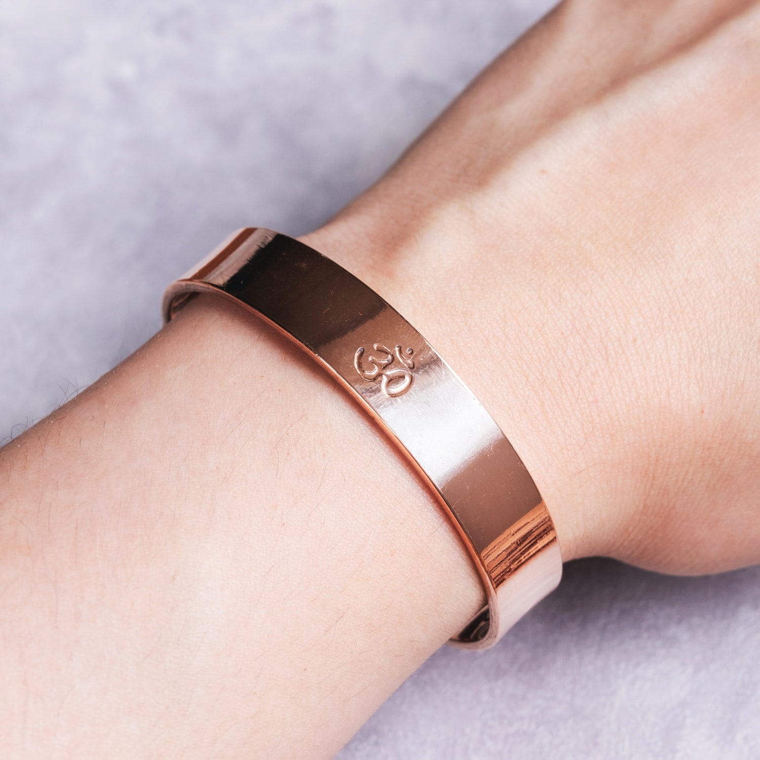 インドの純銅製バングル さり気ないオーンが手元を彩る 鏡面プレーンデザイン マグネット6個内蔵 アーユルヴェーダやプージャで親しまれる銅 ユニセックス 通販店