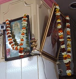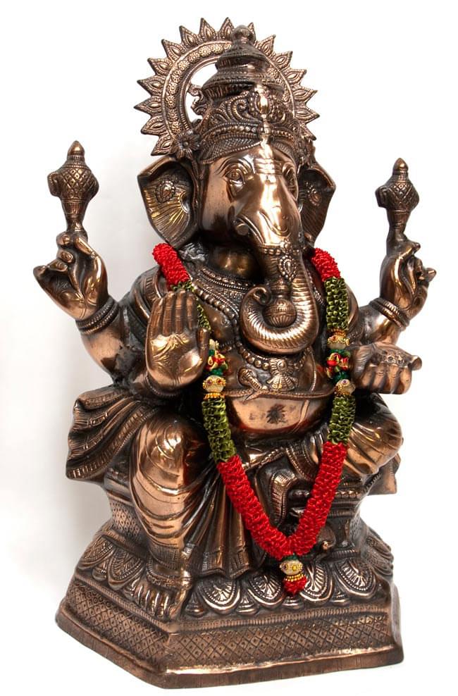 ガネーシャの首にかけてみました。まるでインドのようです。