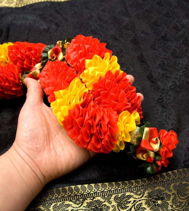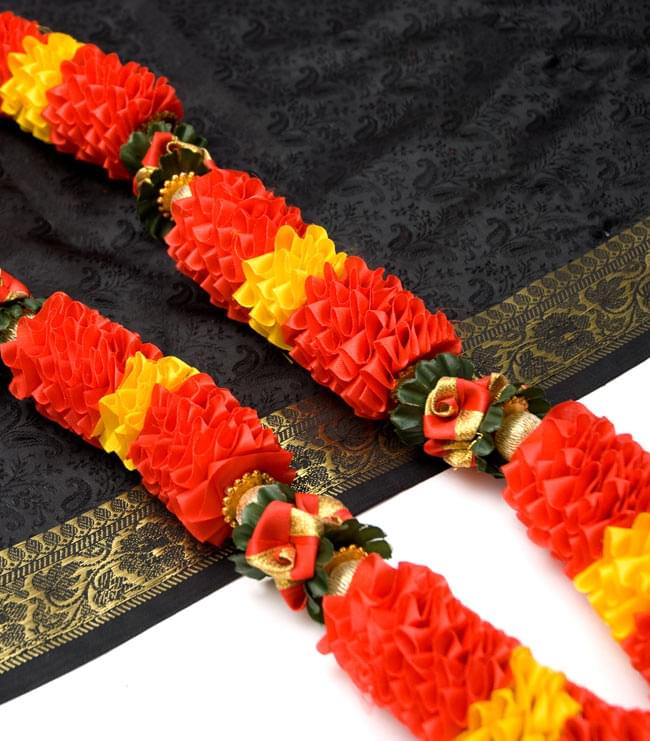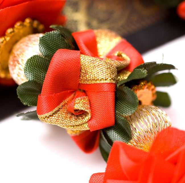 インドで額縁を飾ったり、神様にかけて奉納したり、または人の首にかけて装飾や、ハワイのレイのように人を歓迎したり、祝福したりする目的で使用されるインドの造花が入荷しました。素材は化学繊維で出来ていますので、作りが違うとクリスマスのオーナメントみたいな感じになりますが、形と使用方法が違うので、同じ素材でもやはりインド風に見えますね。■インド風なインテリアに。