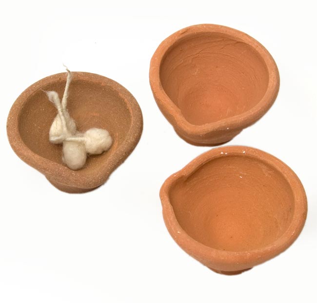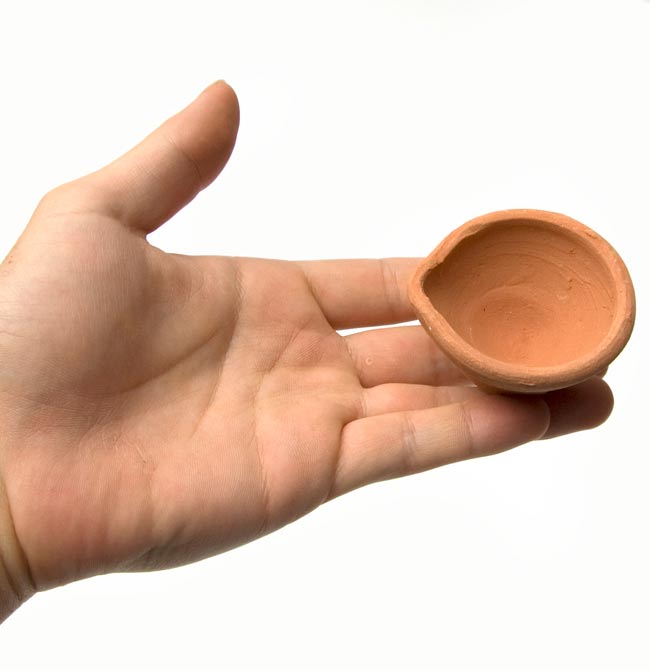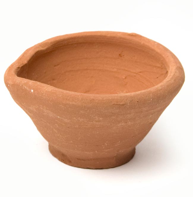 一個一個手で土をこね、型に入れて作った素焼きの皿です。インドでは礼拝用のランプベースとして使用しますが、お香皿にしても良いですし、また何か小さいものを入れておくときにも重宝します。